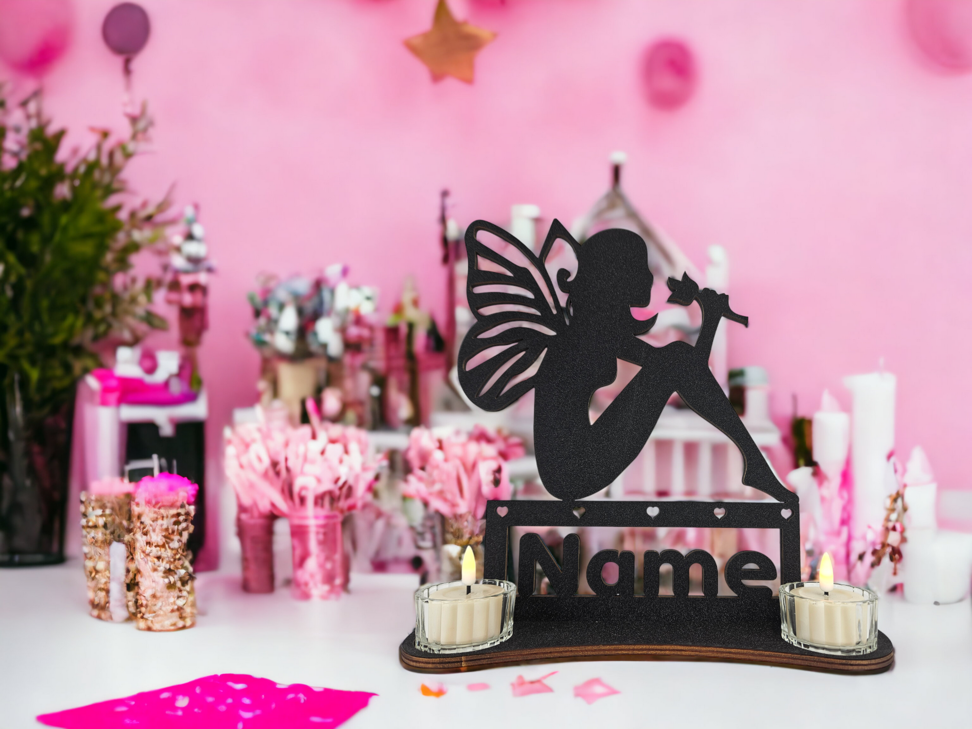 Waluna® Schmetterling Mama Muttertagsgeschenk personalisiert mit 2 Namen Herzen Teelichthalter zum Muttertag Geburtstag