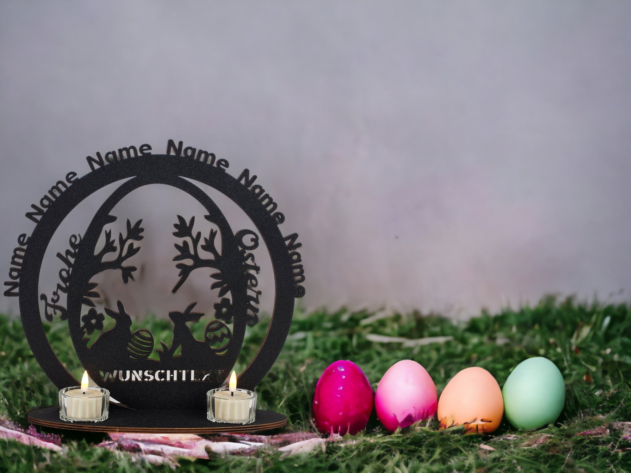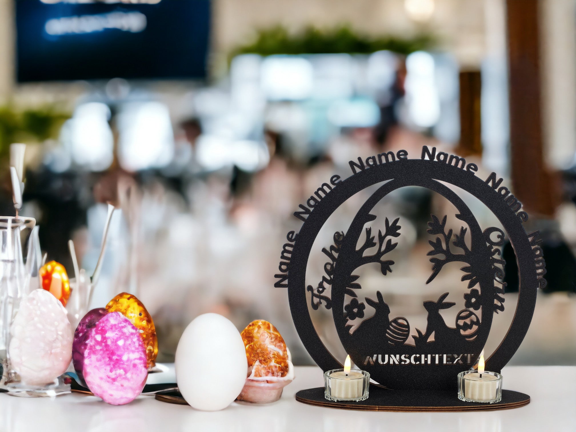 Waluna® Osterbaum Lebensbaum Osterdeko personalisiert mit bis zu 6 Namen Familienbaum mit Wunschtext Stammbaum