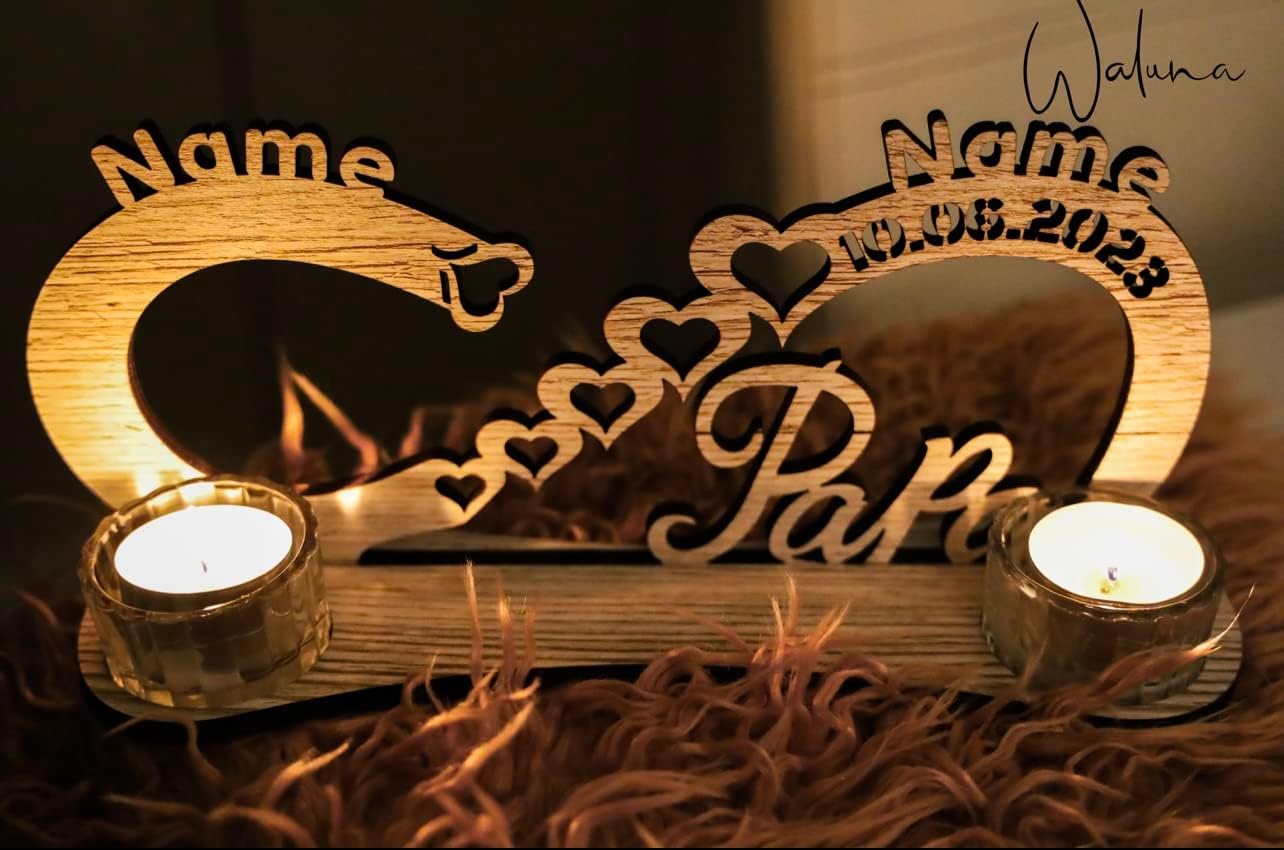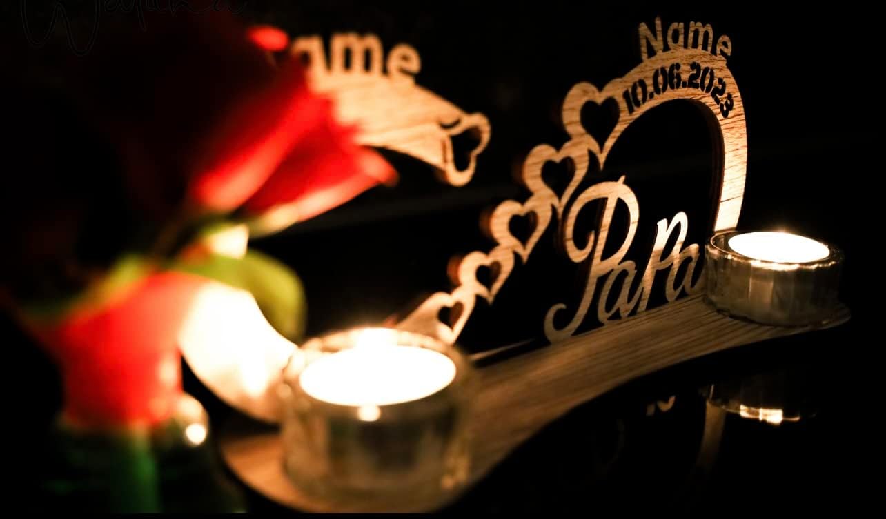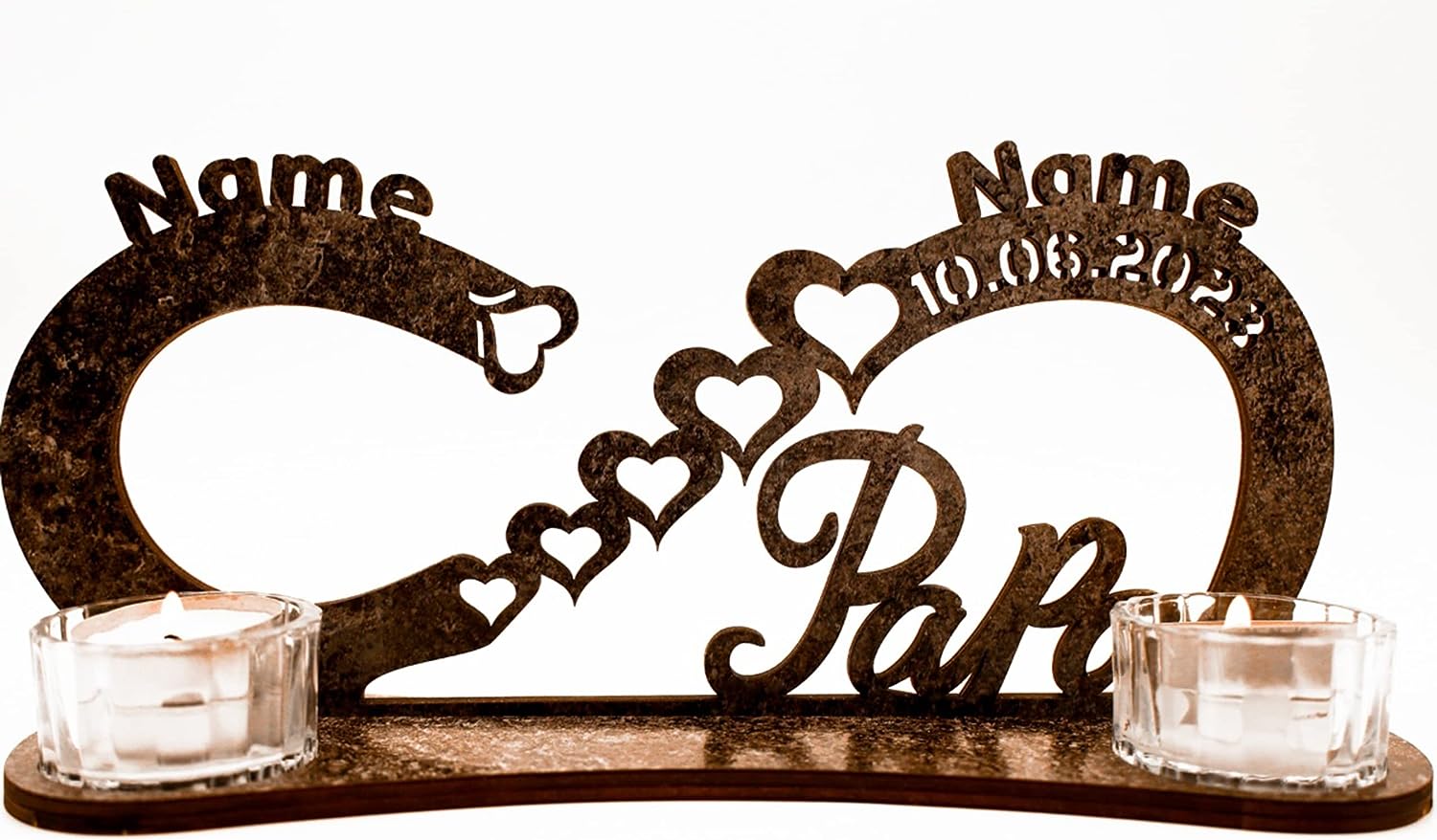 Papa Vatertagsgeschenk Unendlichkeitszeichen Teelichthalter personalisiert mit Zwei Namen und Datum Herzen zum Männertag Geburtstag