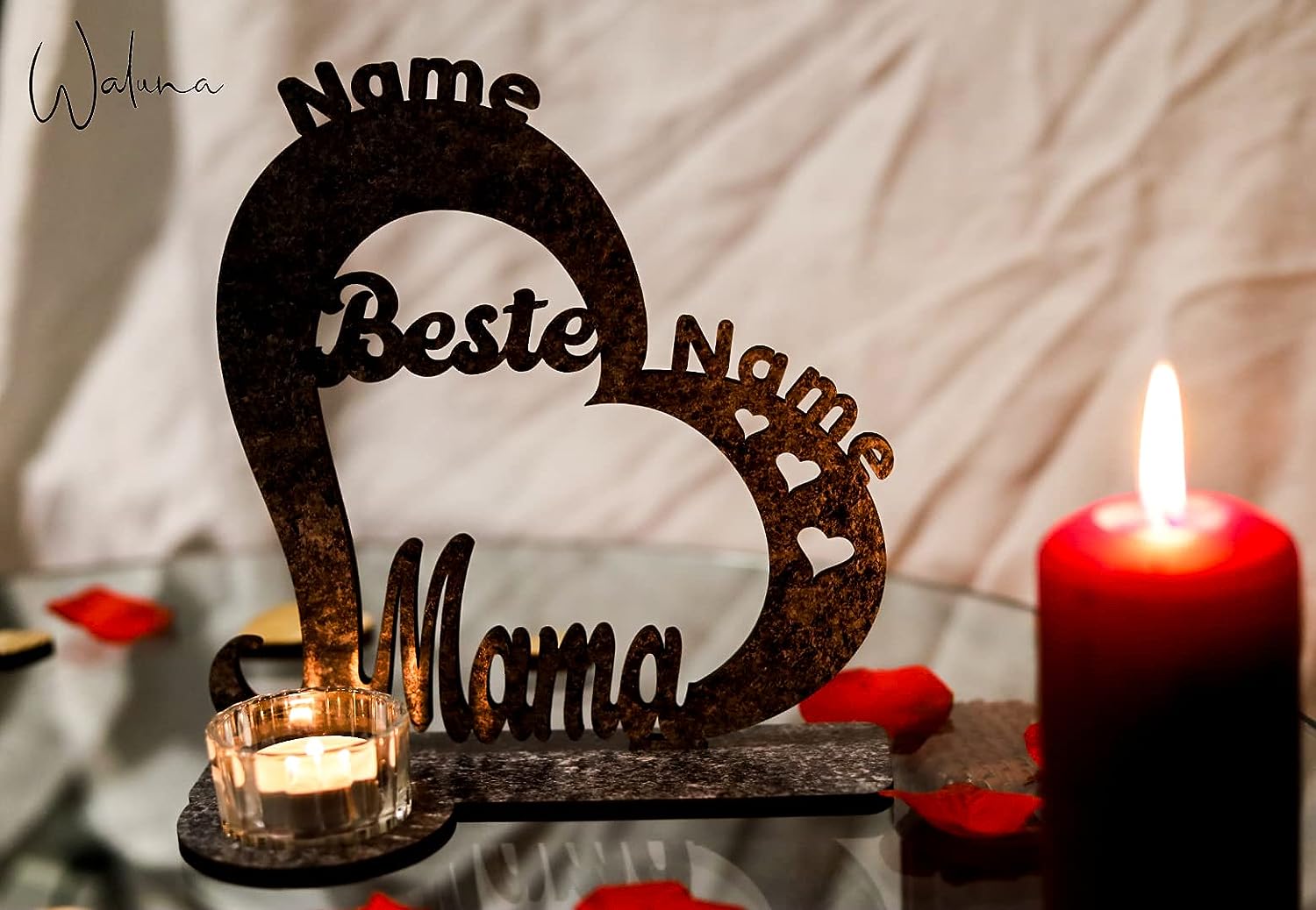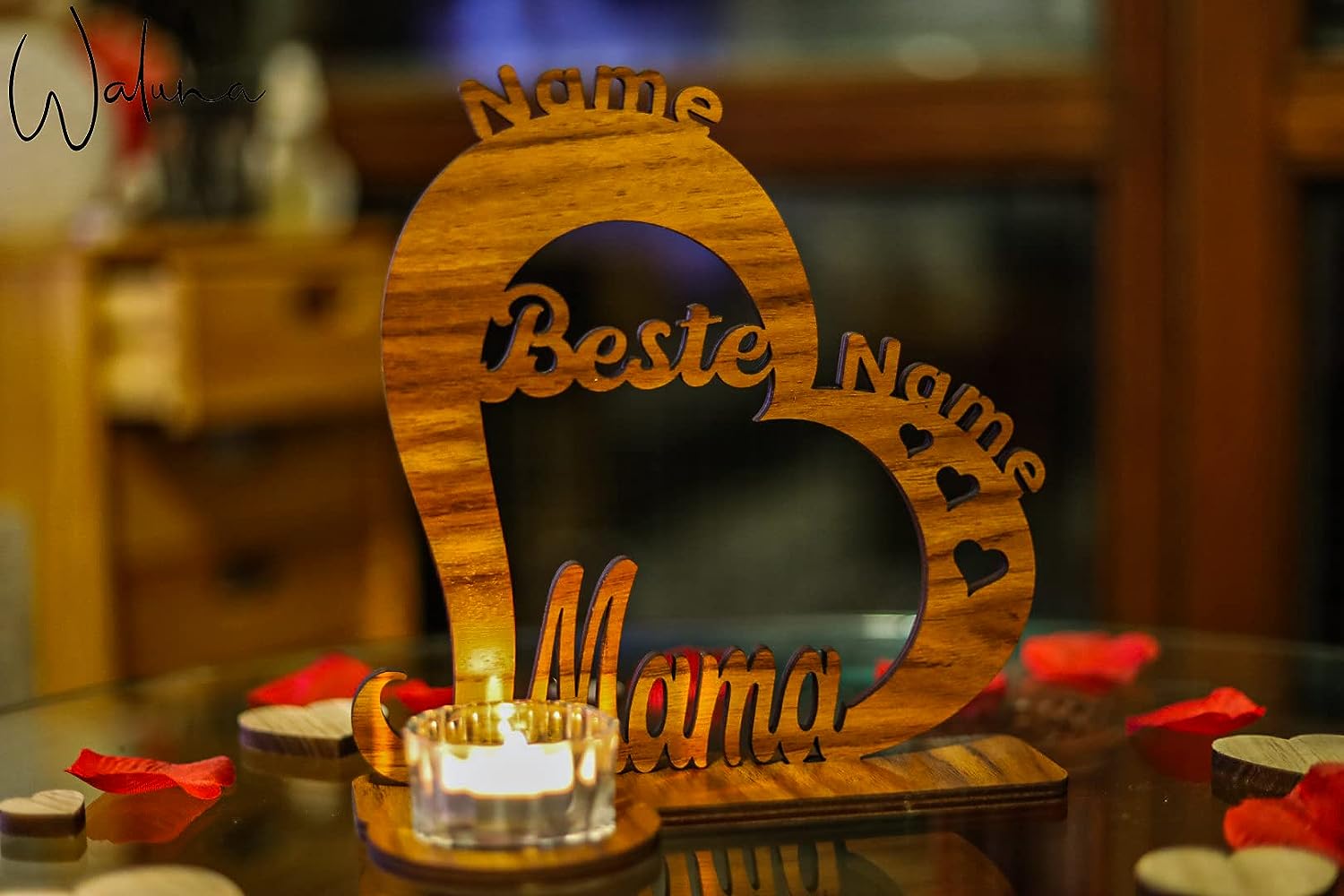 Beste Mama Muttertagsgeschenk Herz Teelichthalter personalisiert mit Zwei Namen Herzen zum Muttertag Geburtstag