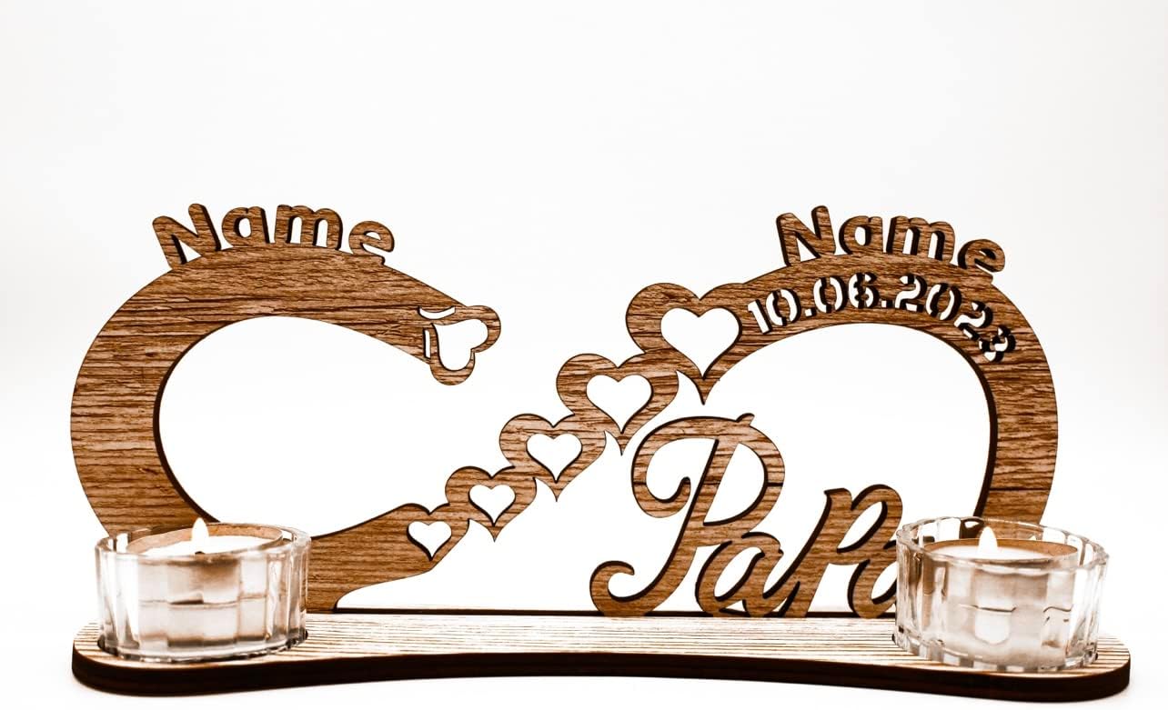 Familiengechenk Teelichthalter Unendlichkeitszeichen personalisiert mit Wunschnamen/Datum Herzen zum Jahrestag Weihnachten in 12 Farben