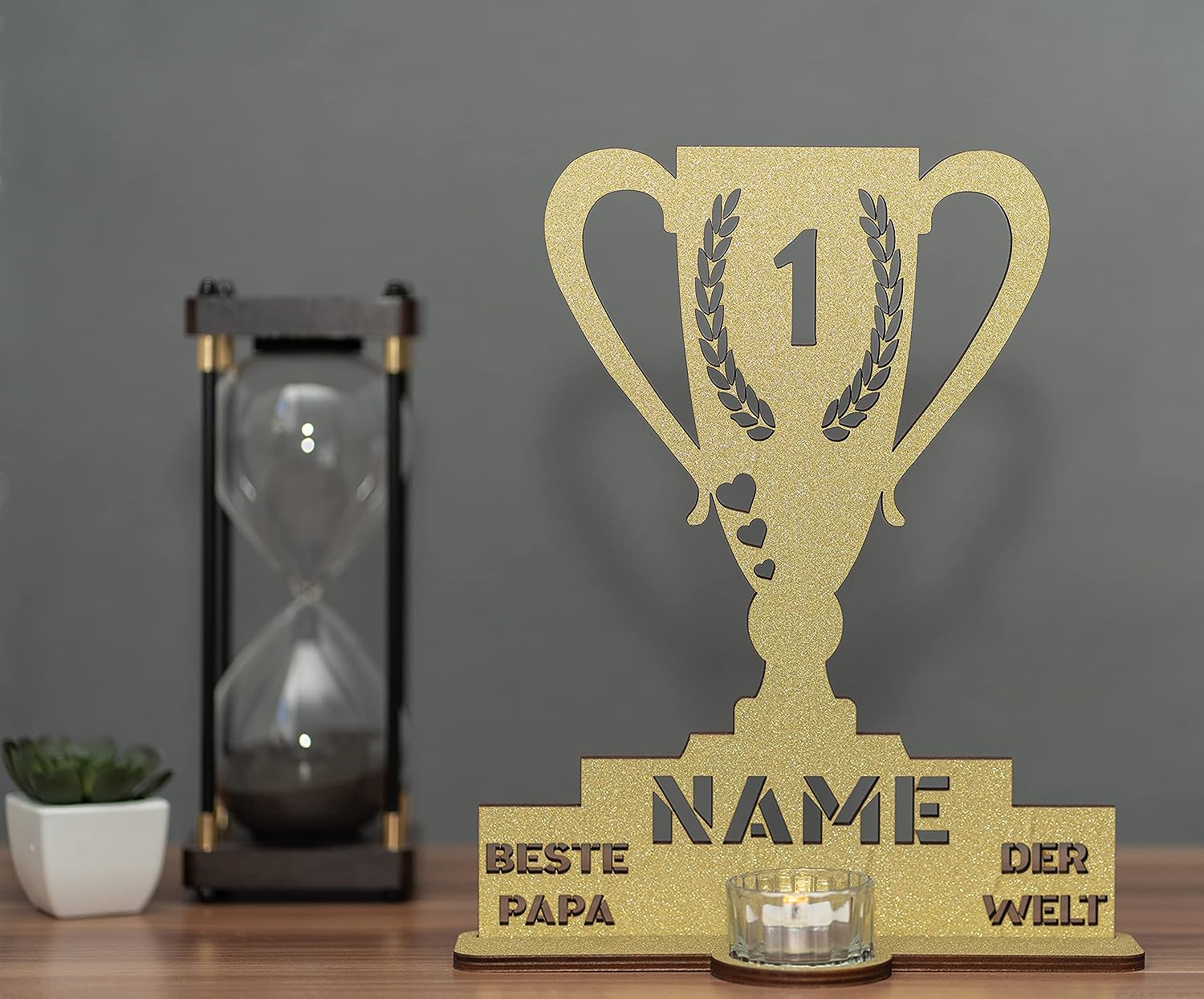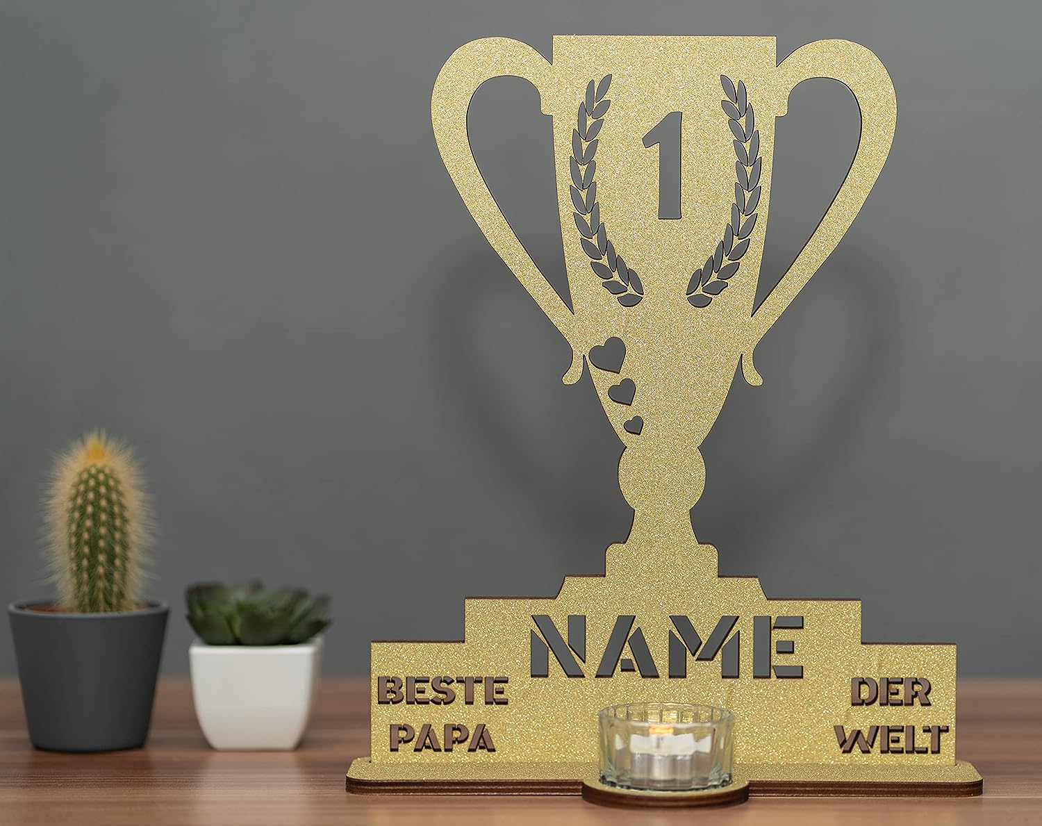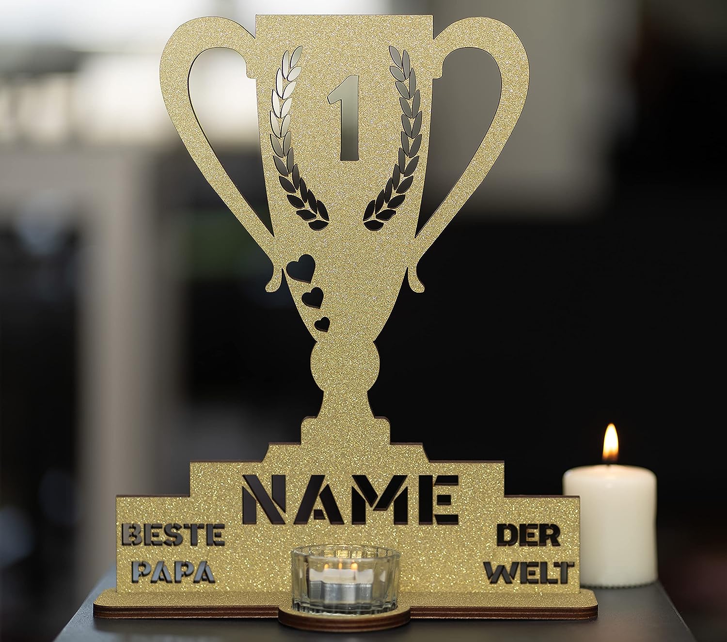 Pokal Beste Papa/Schwester/Lehrer nach Wunsch Geburtstagsgeschenk Teelichthalter personalisiert mit Namen in Gold Silber