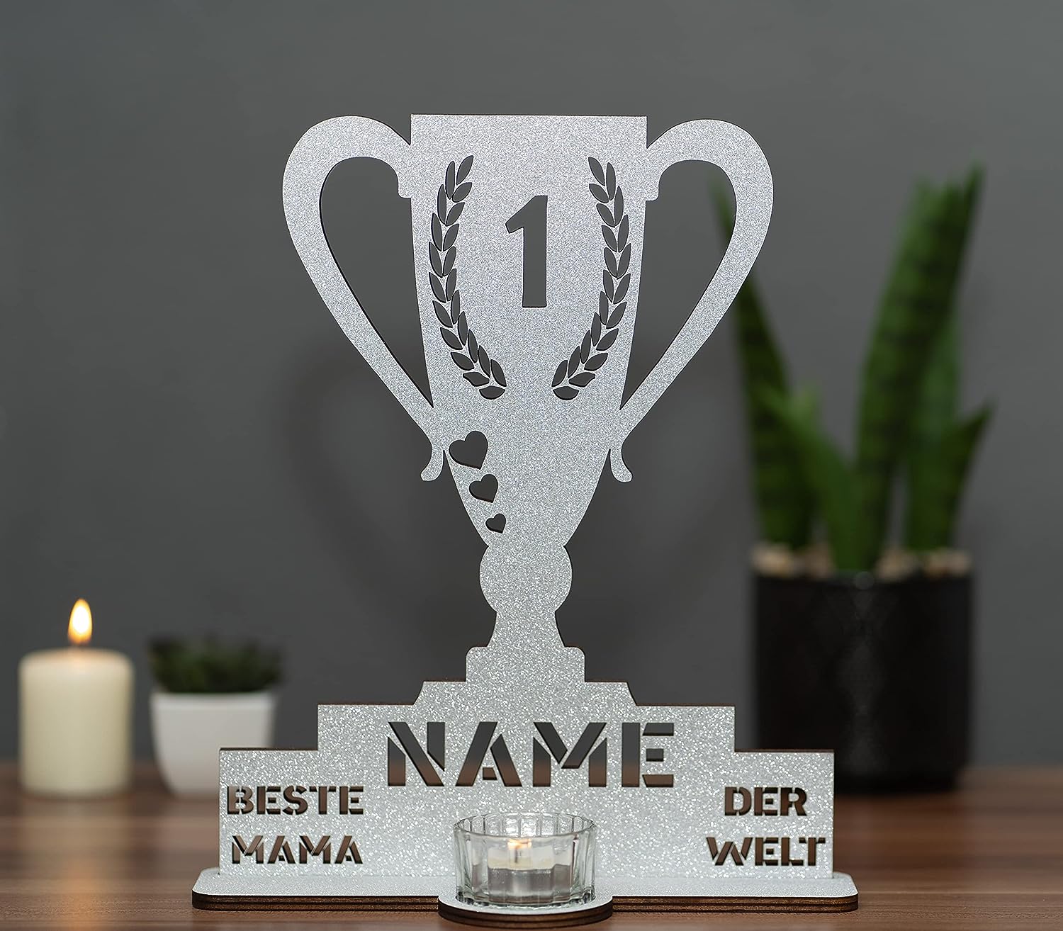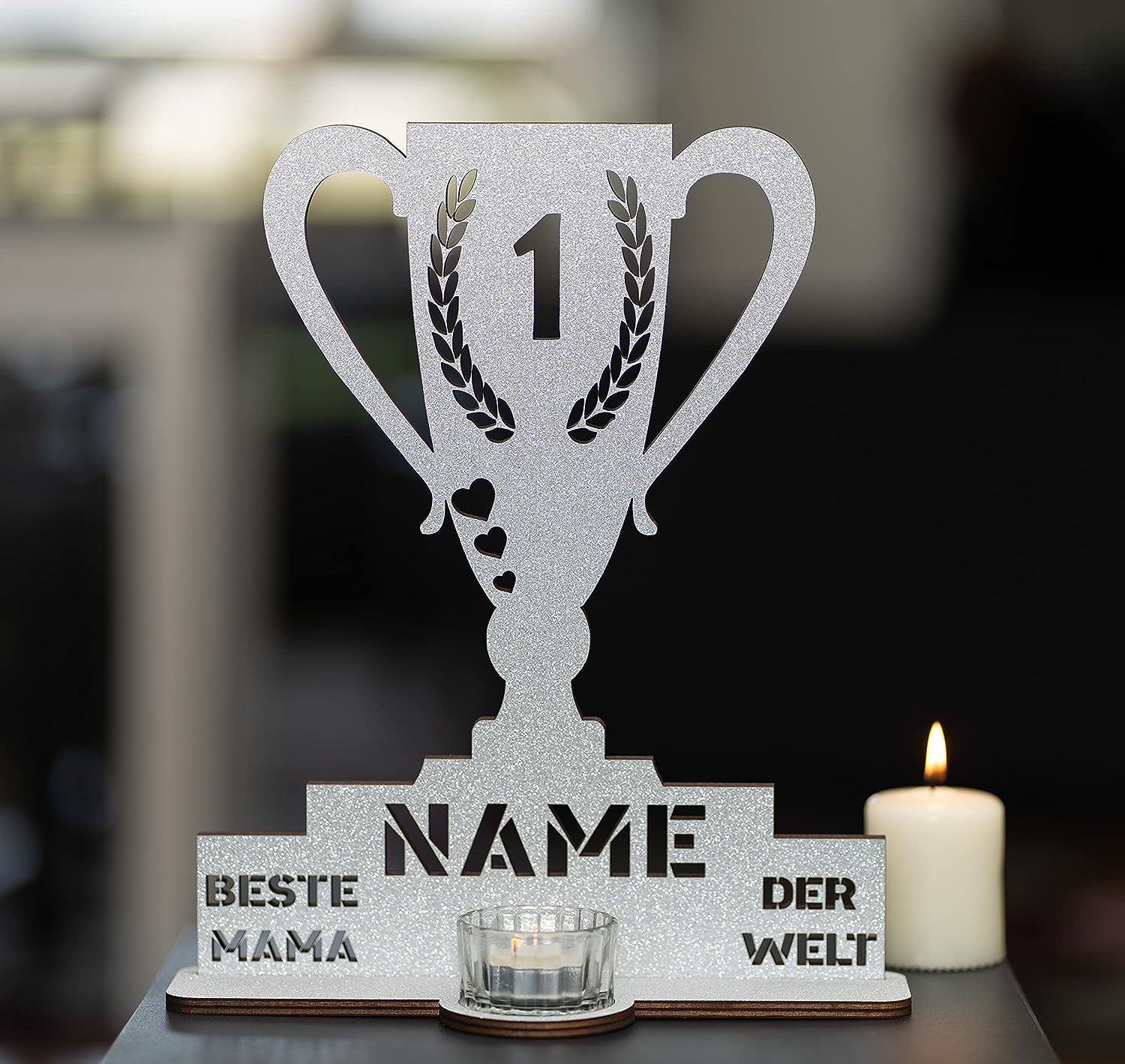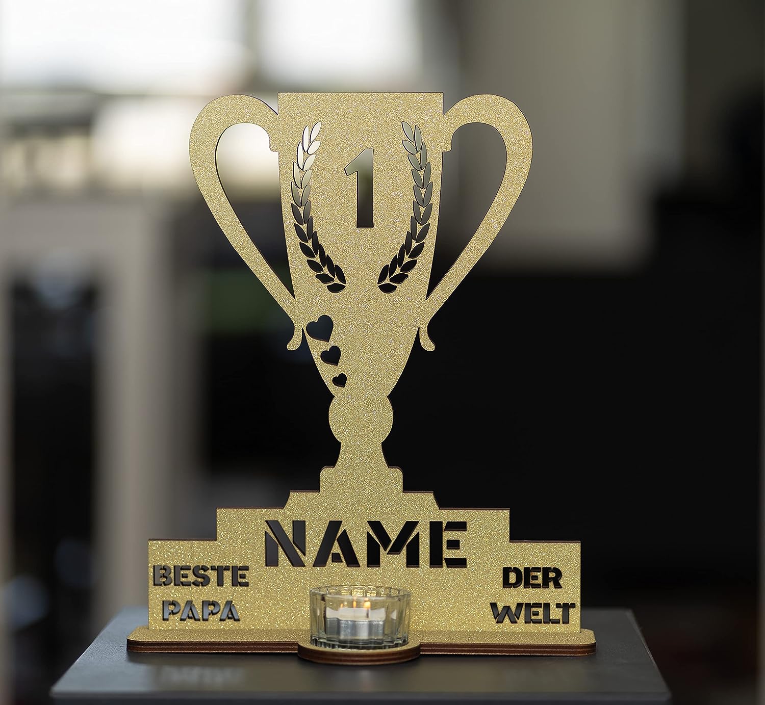 Pokal Beste Papa/Schwester/Lehrer nach Wunsch Geburtstagsgeschenk Teelichthalter personalisiert mit Namen in Gold Silber