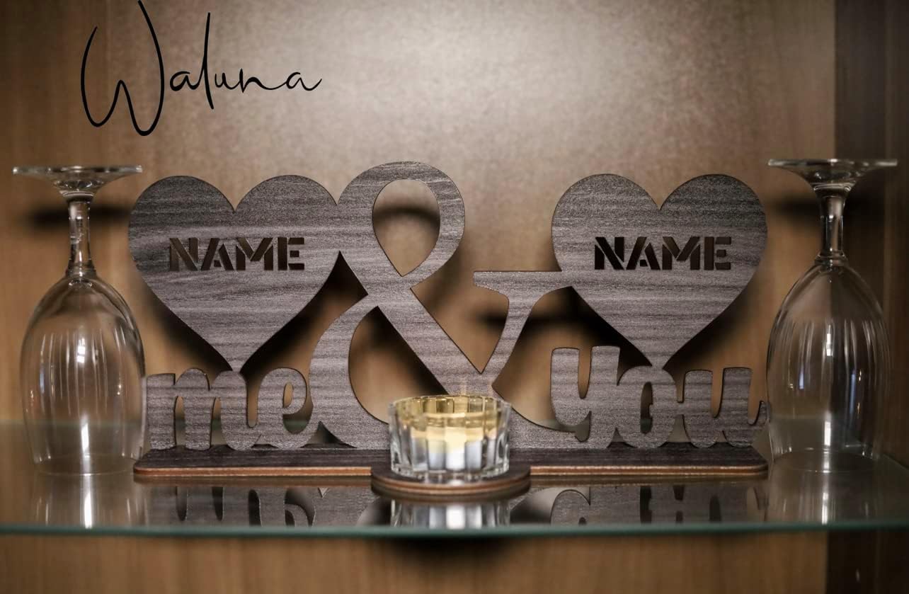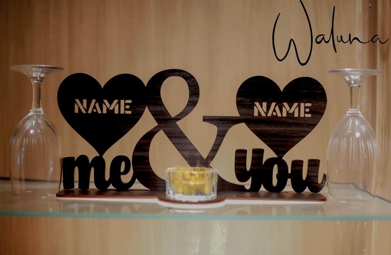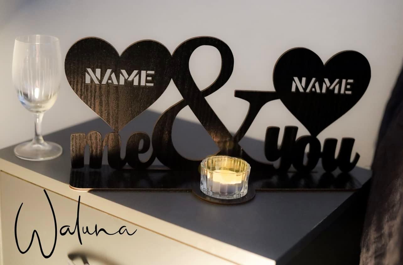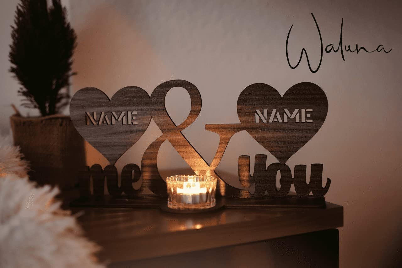 Me & You Liebesgeschenk Teelichthalter personalisiert mit Zwei Namen Herzen zum Jahrestag Hochzeitsgeschenk mit Kerzen in 12 Farben