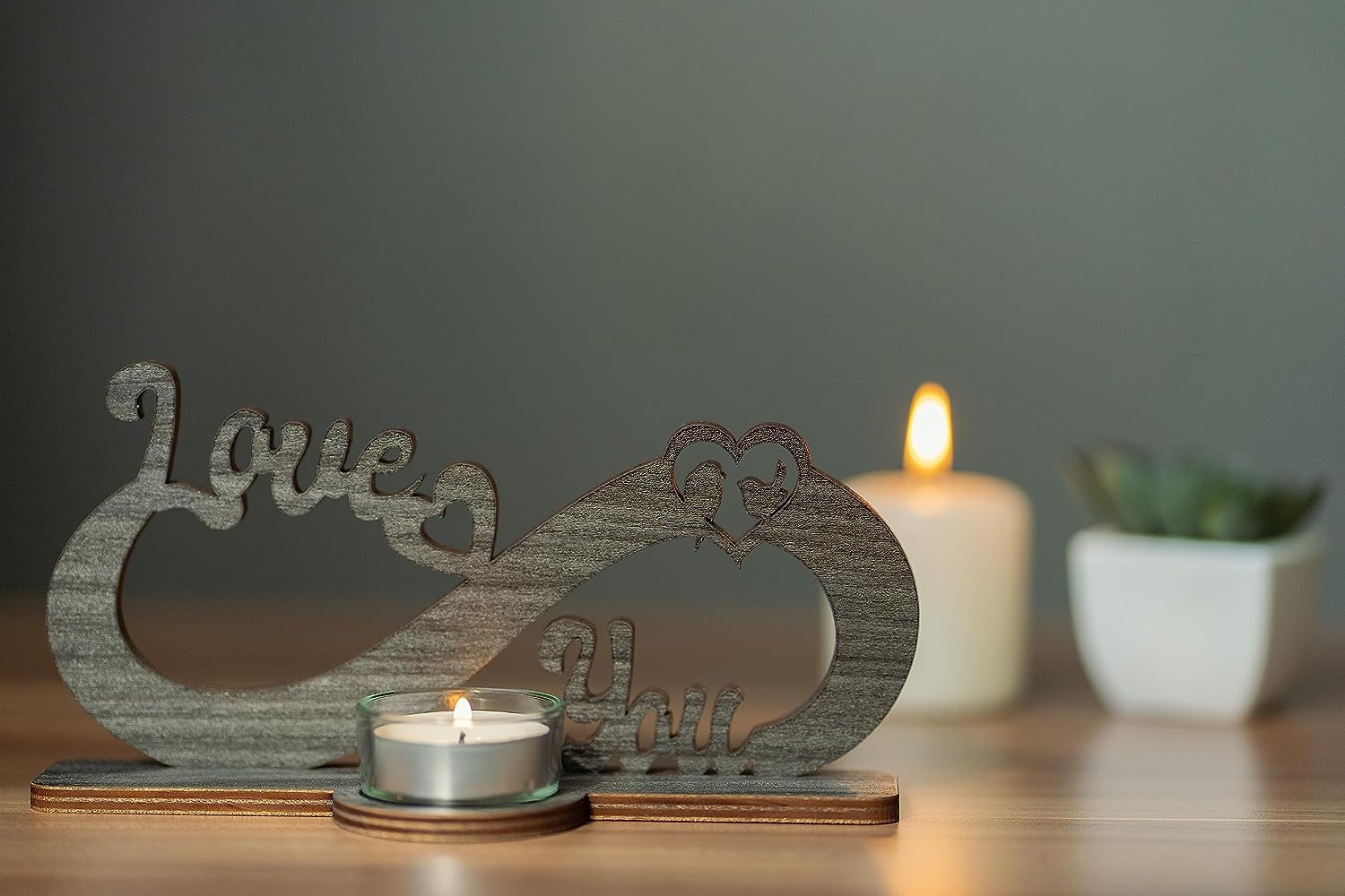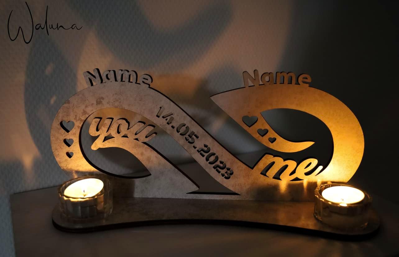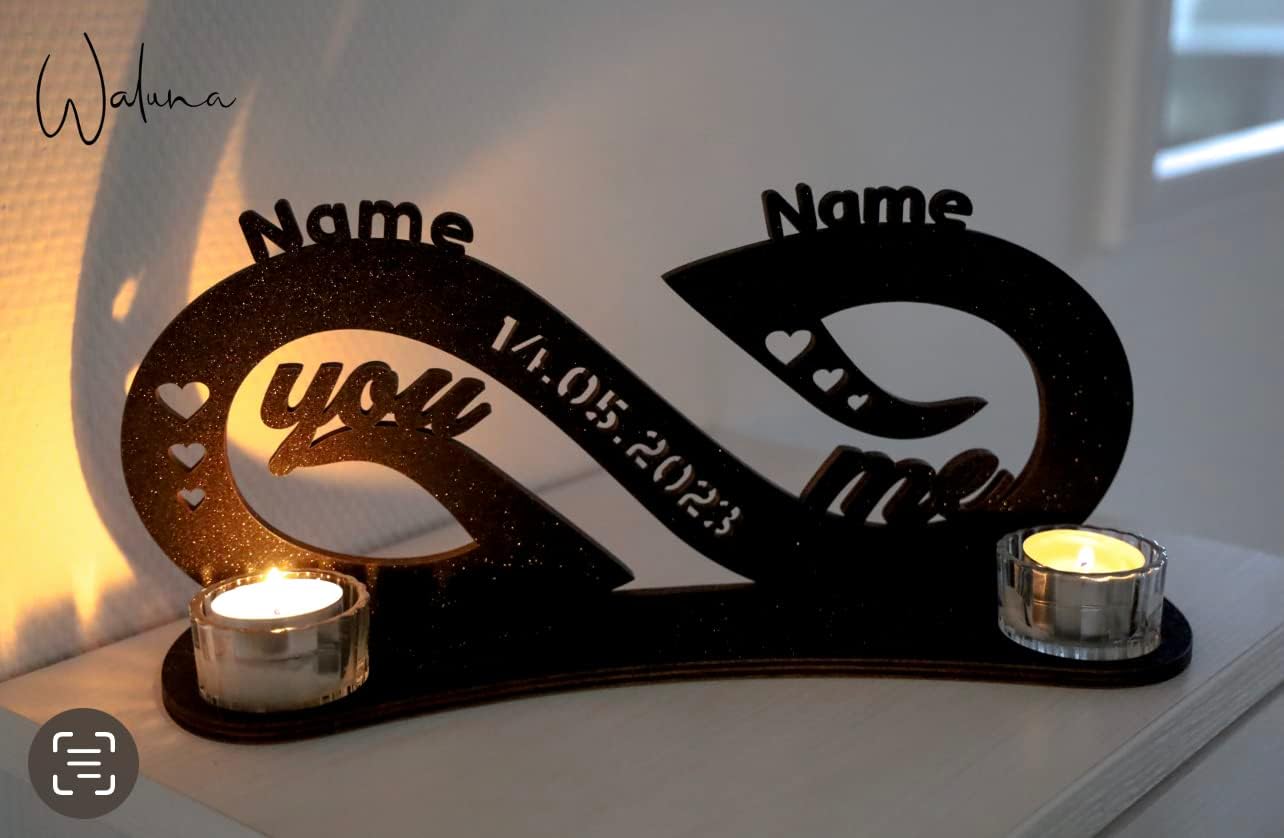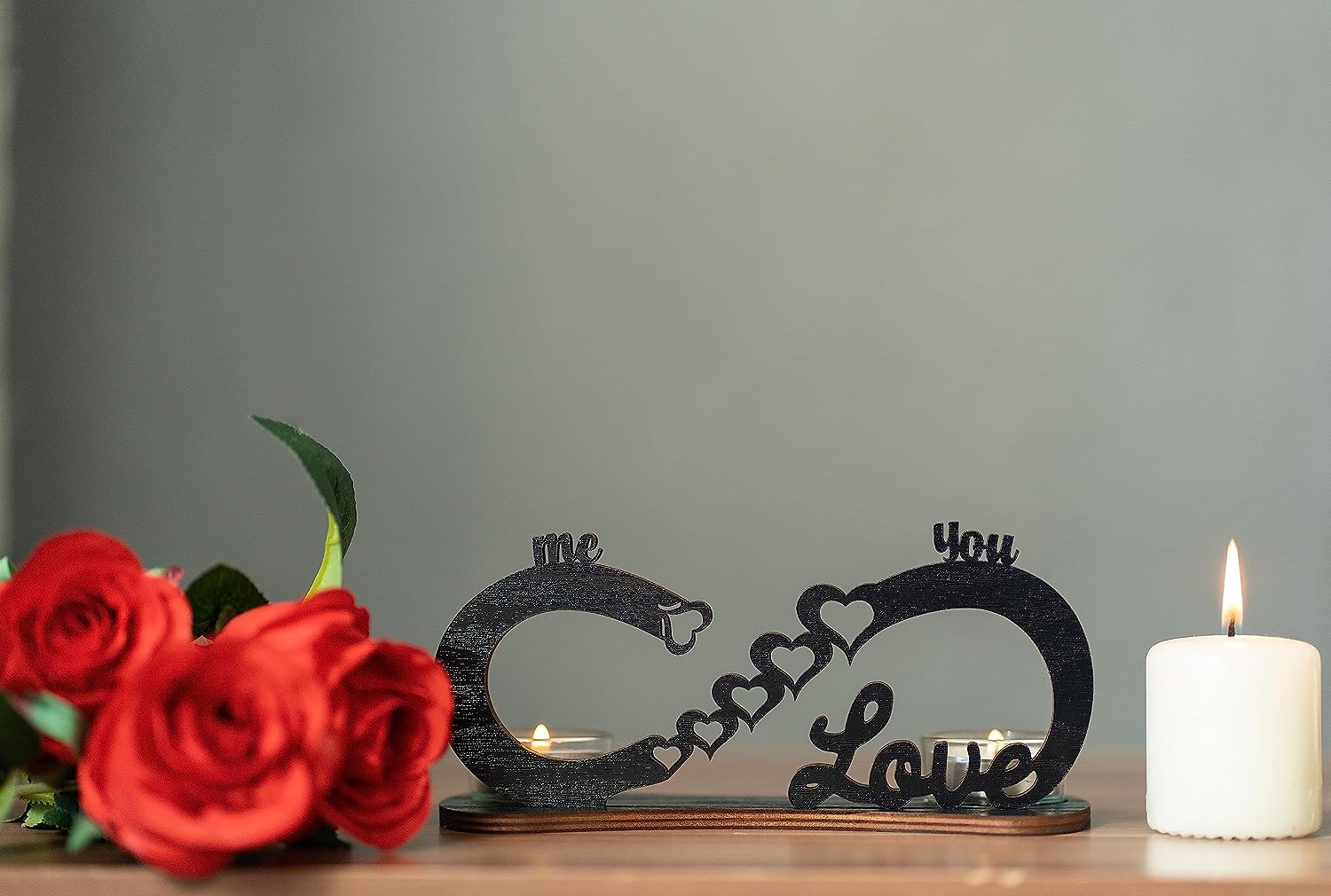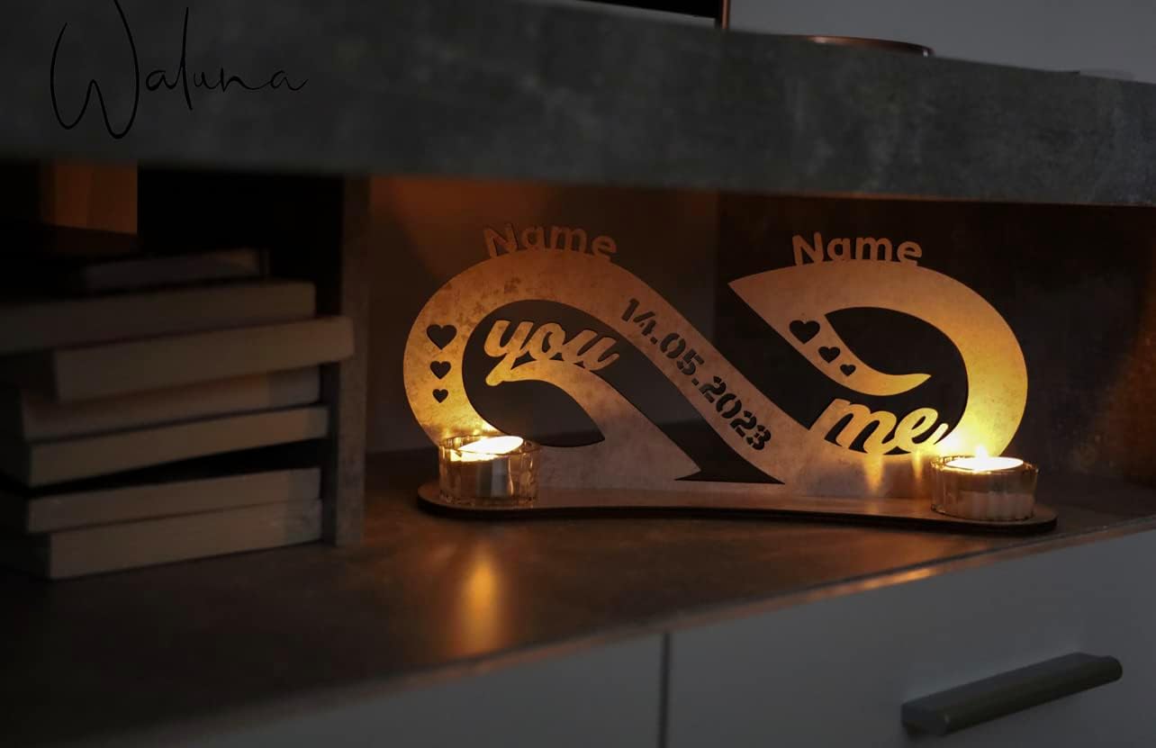 Liebesgeschenk Teelichthalter Hochzeitsgechenk für Brautpaar Unendlichkeitszeichen Love You Me Geburtstagsgeschenk oder zum Jahrestag