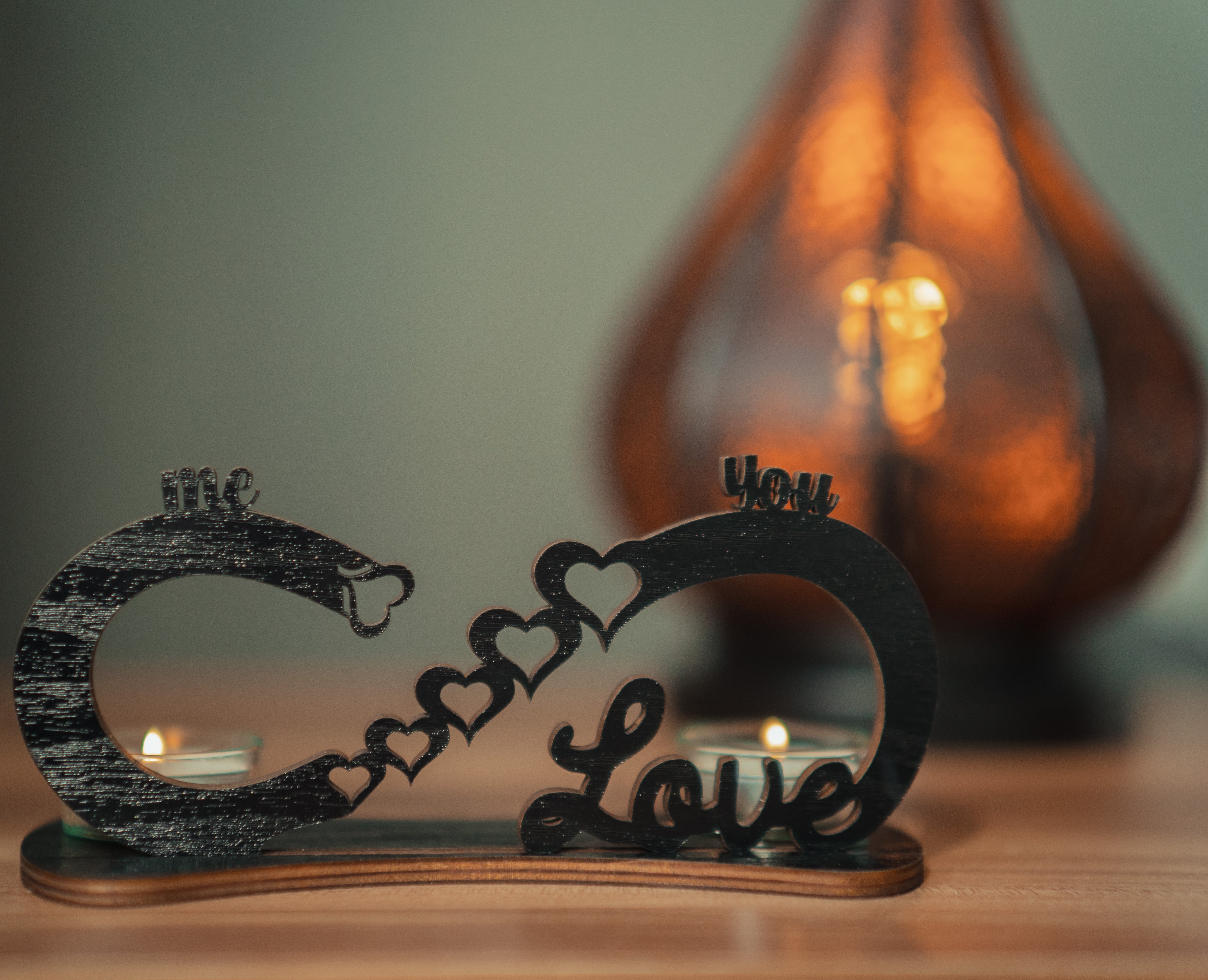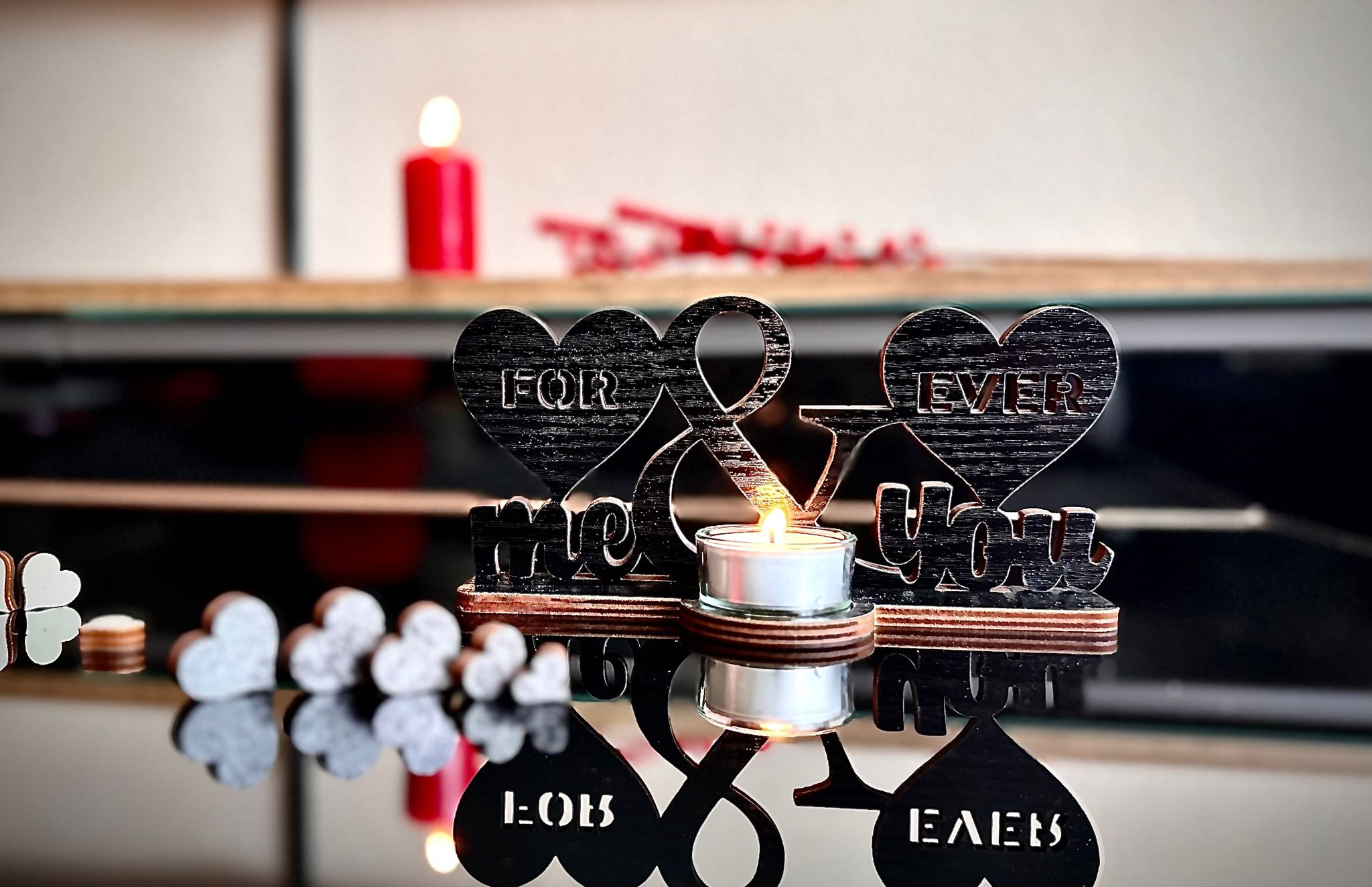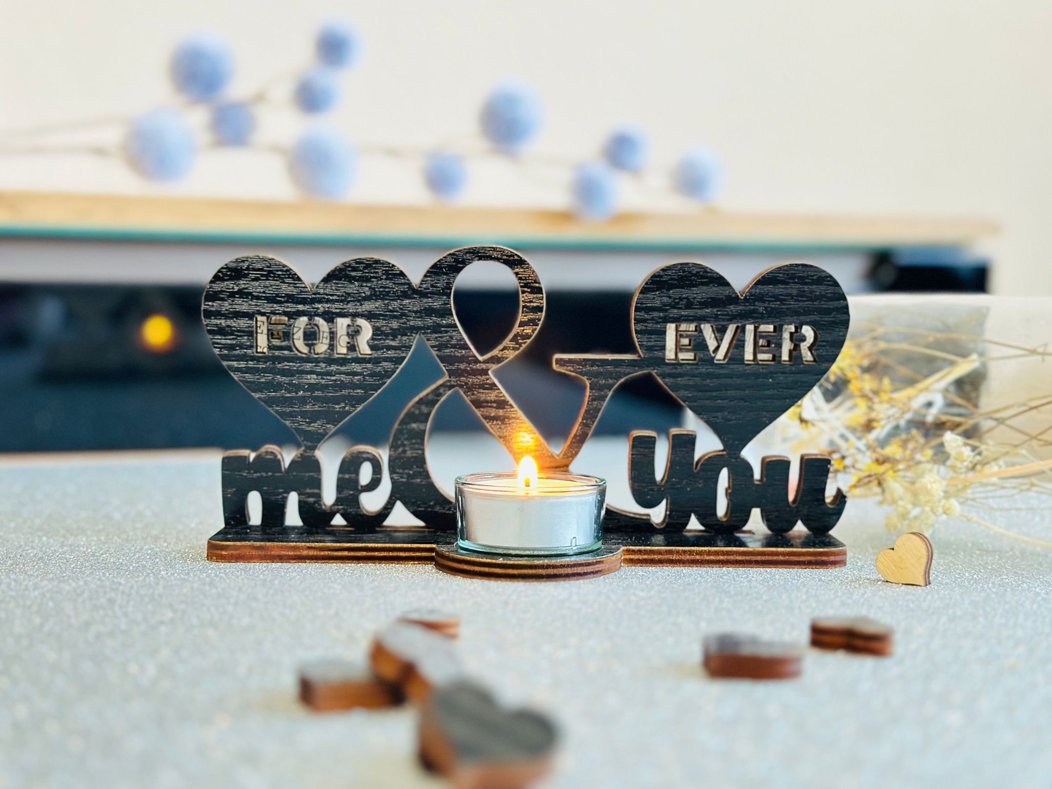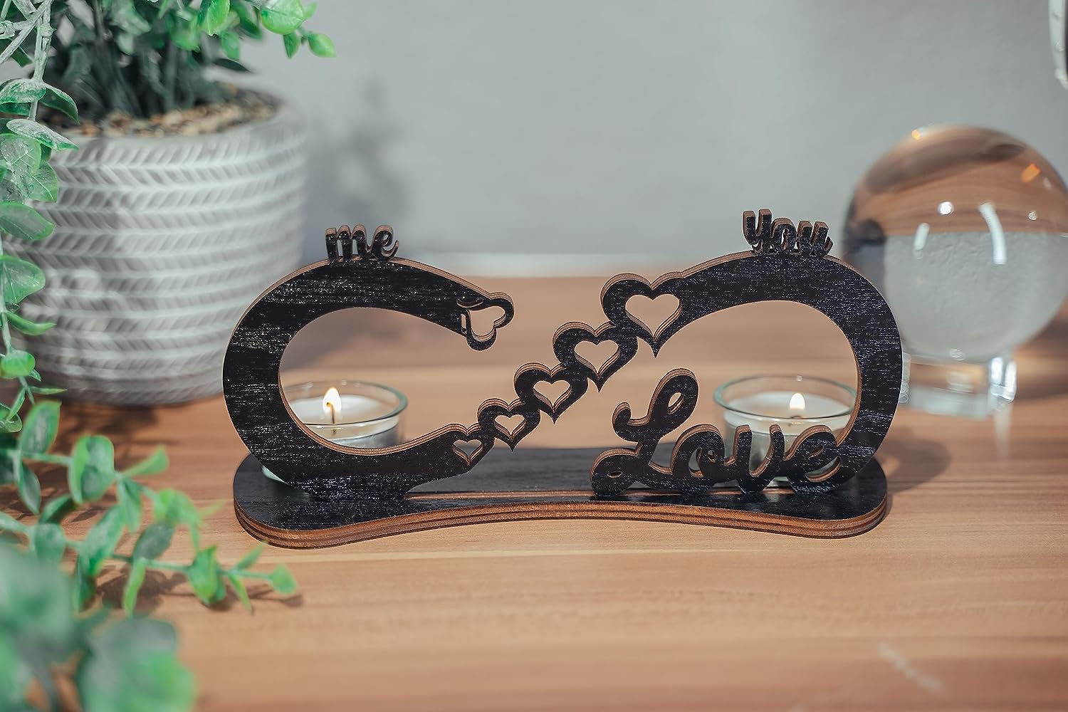 Liebesgeschenk Teelichthalter Hochzeitsgechenk für Brautpaar Unendlichkeitszeichen Love You Me Geburtstagsgeschenk oder zum Jahrestag