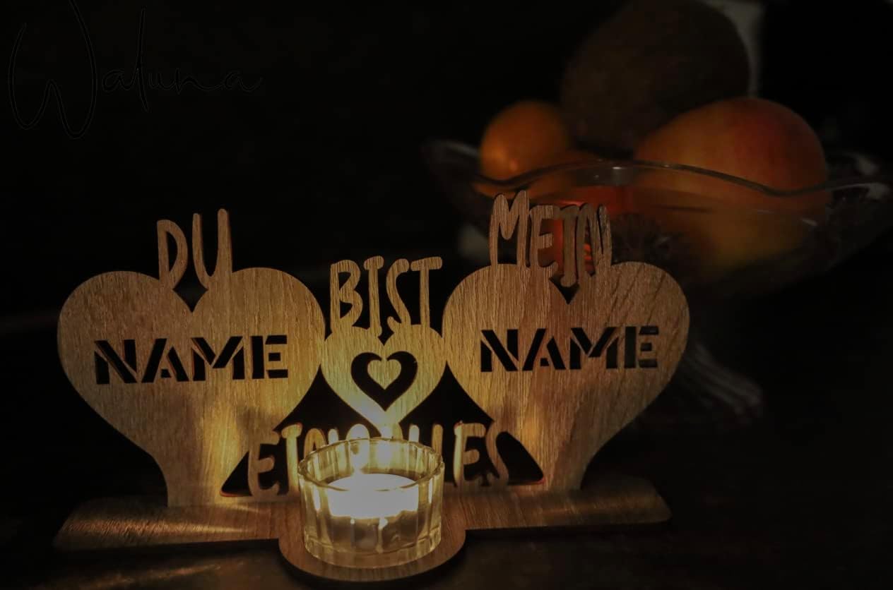 Liebesgeschenk Teelichthalter ewige Liebe mit Zwei Namen Hochzeitsgechenk für Brautpaar Geschenk