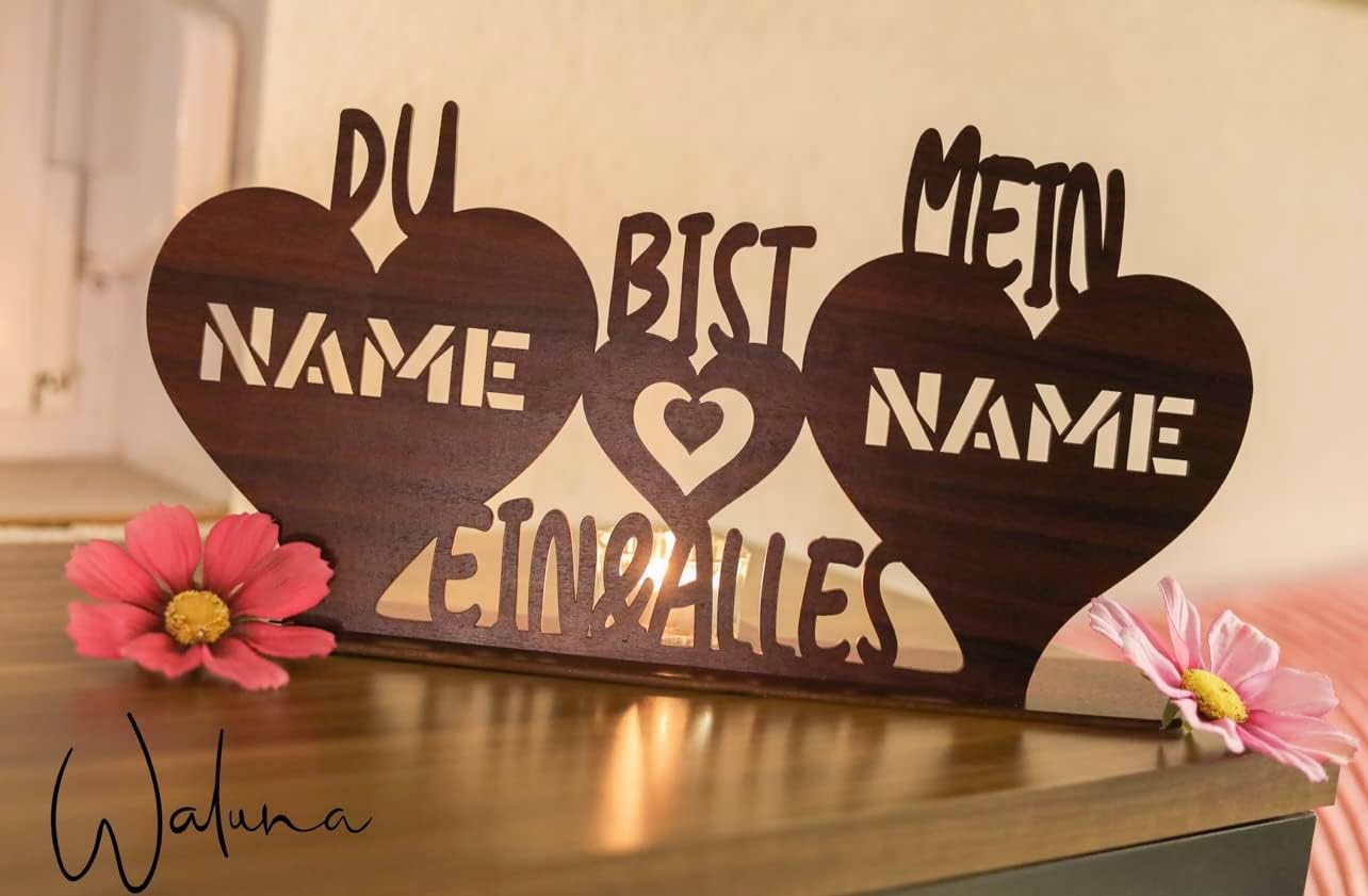 Liebesgeschenk Teelichthalter du bist Mein EIN & Alles personalisiert mit Zwei Namen Herzen Hochzeitsgeschenk Jahrestag