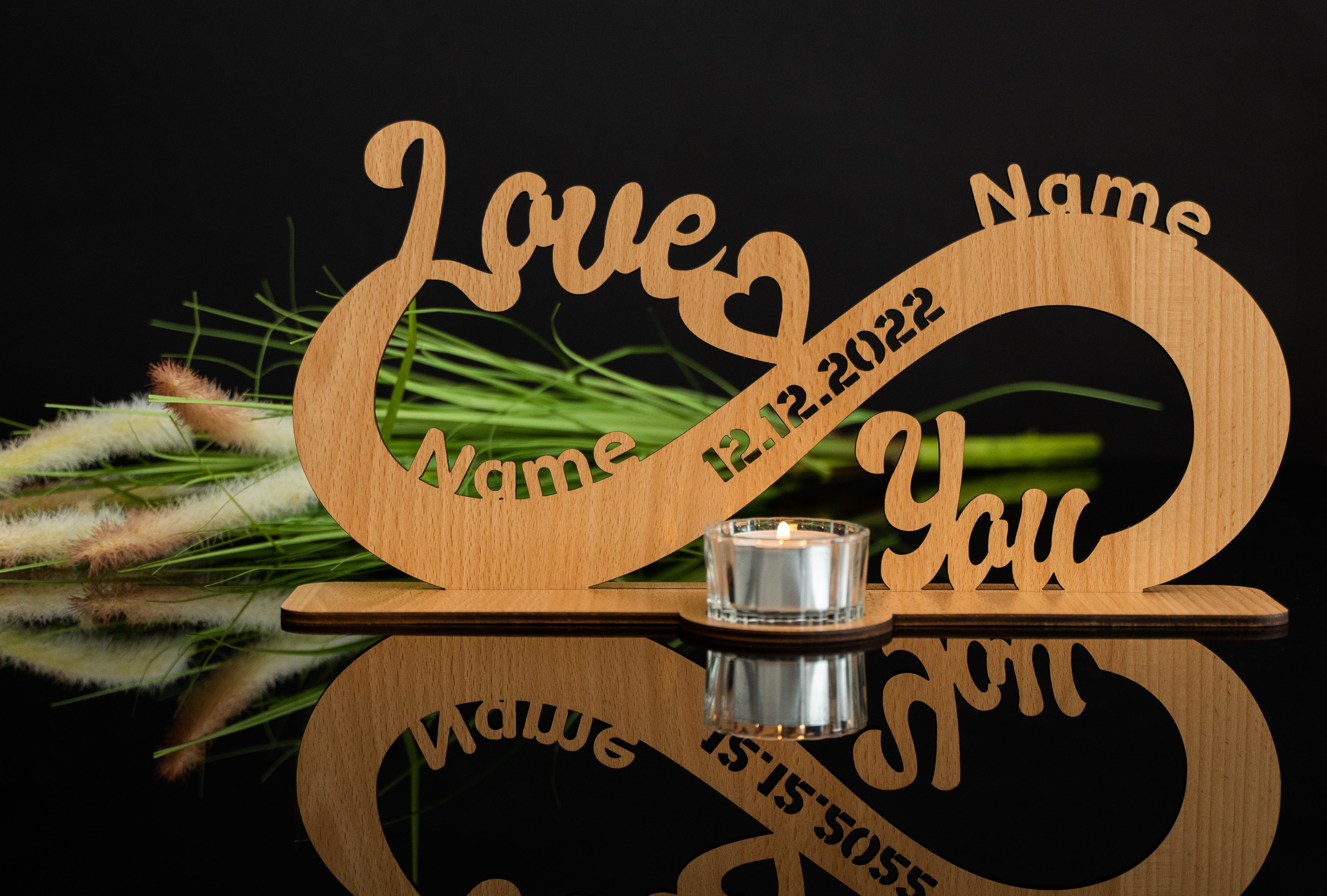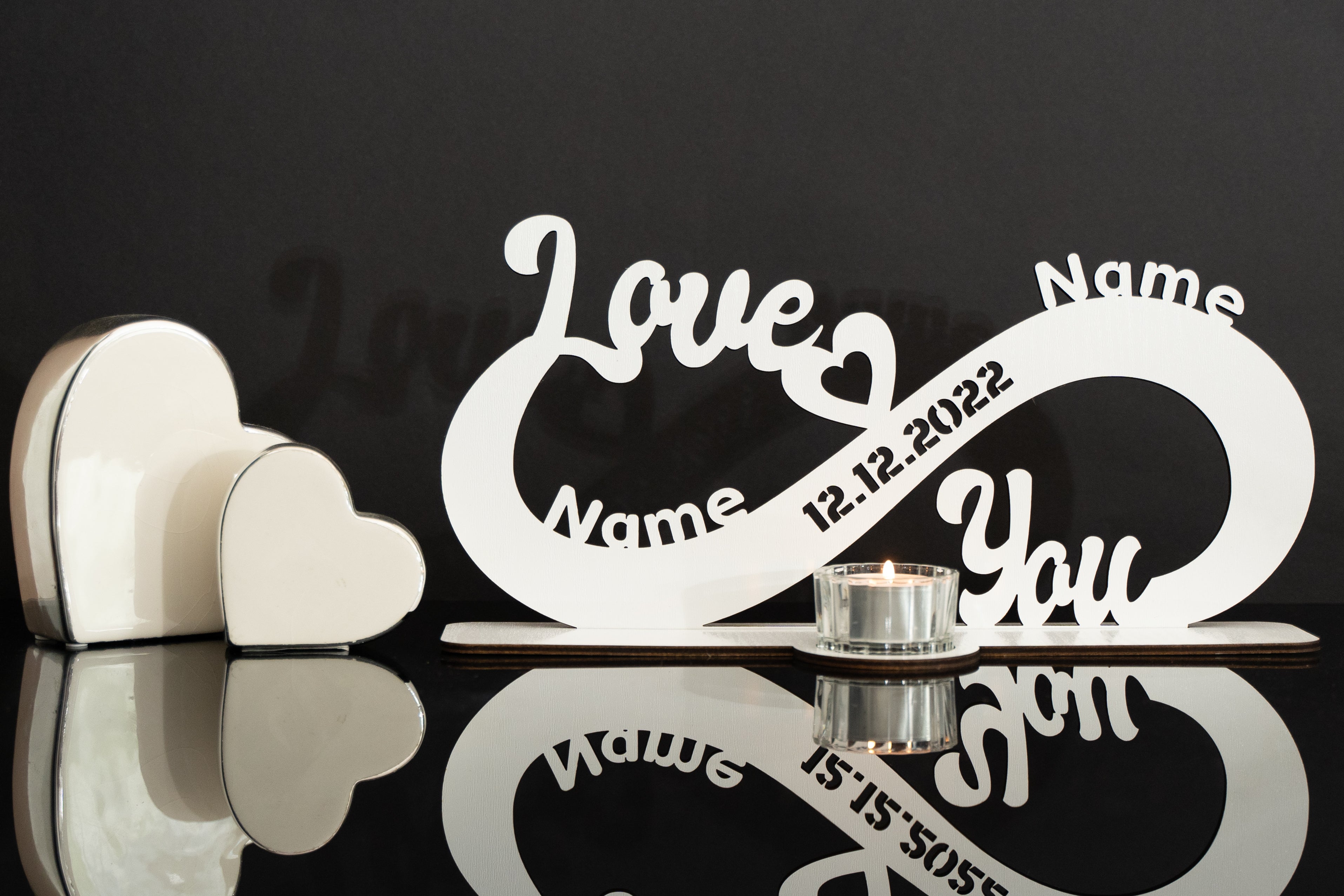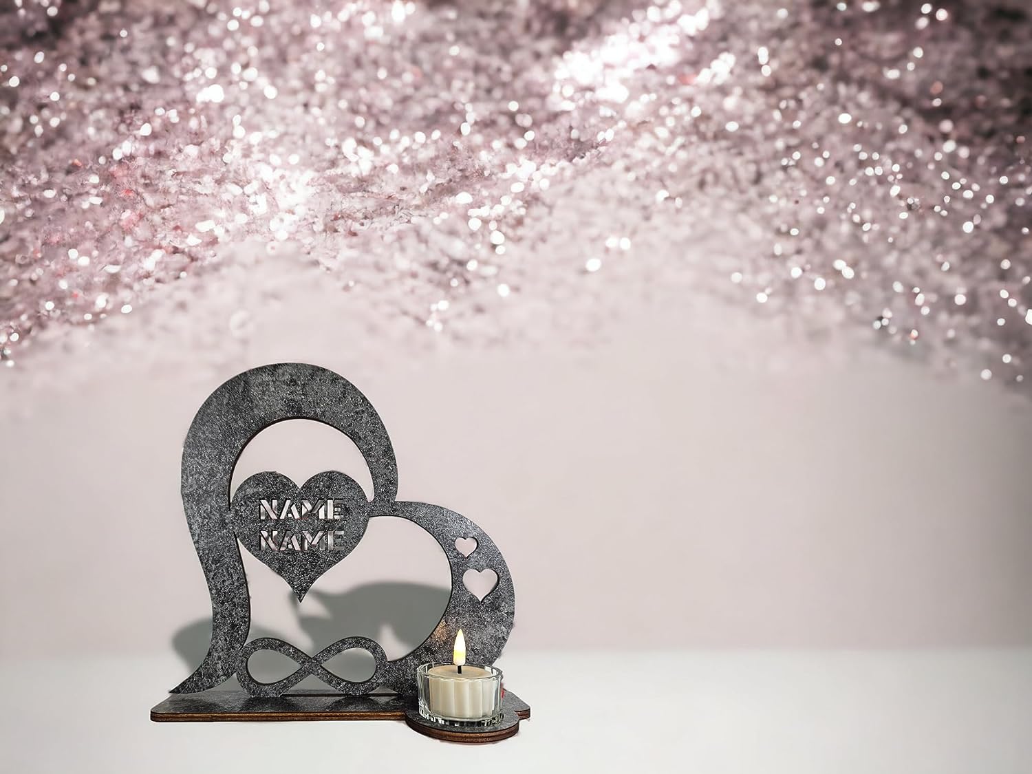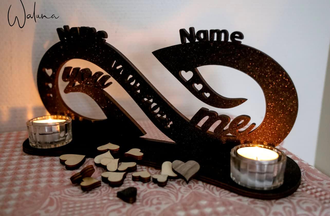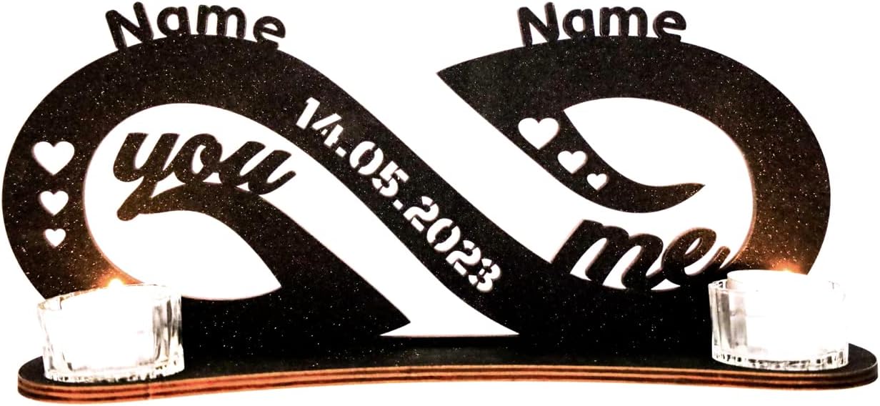 Herzen Infinity Hochzeitsgechenk Liebesgeschenk Teelichthalter Unendlichkeitszeichen personalisiert mit Zwei Namen zum Jahrestag