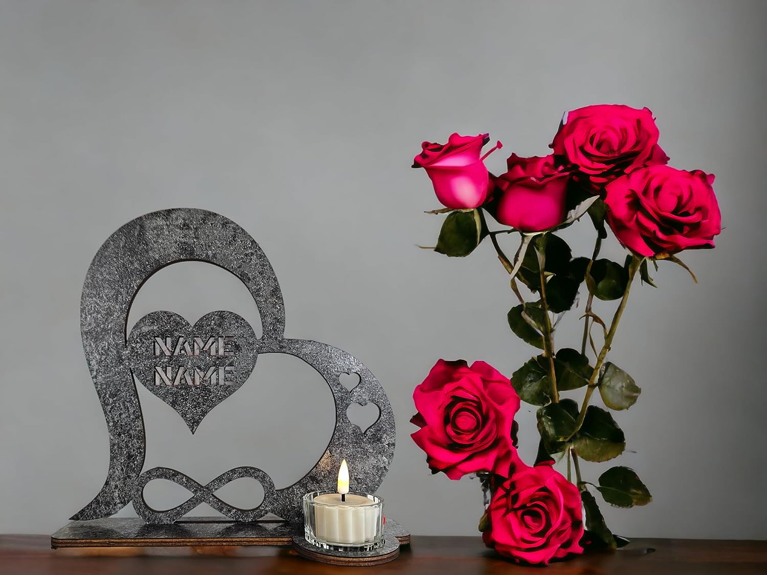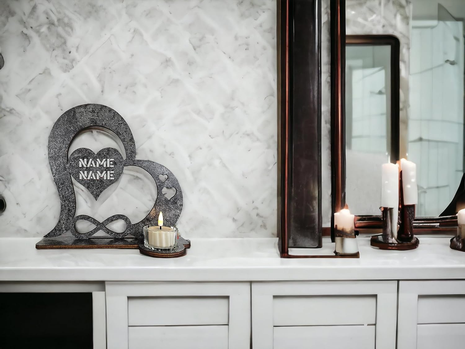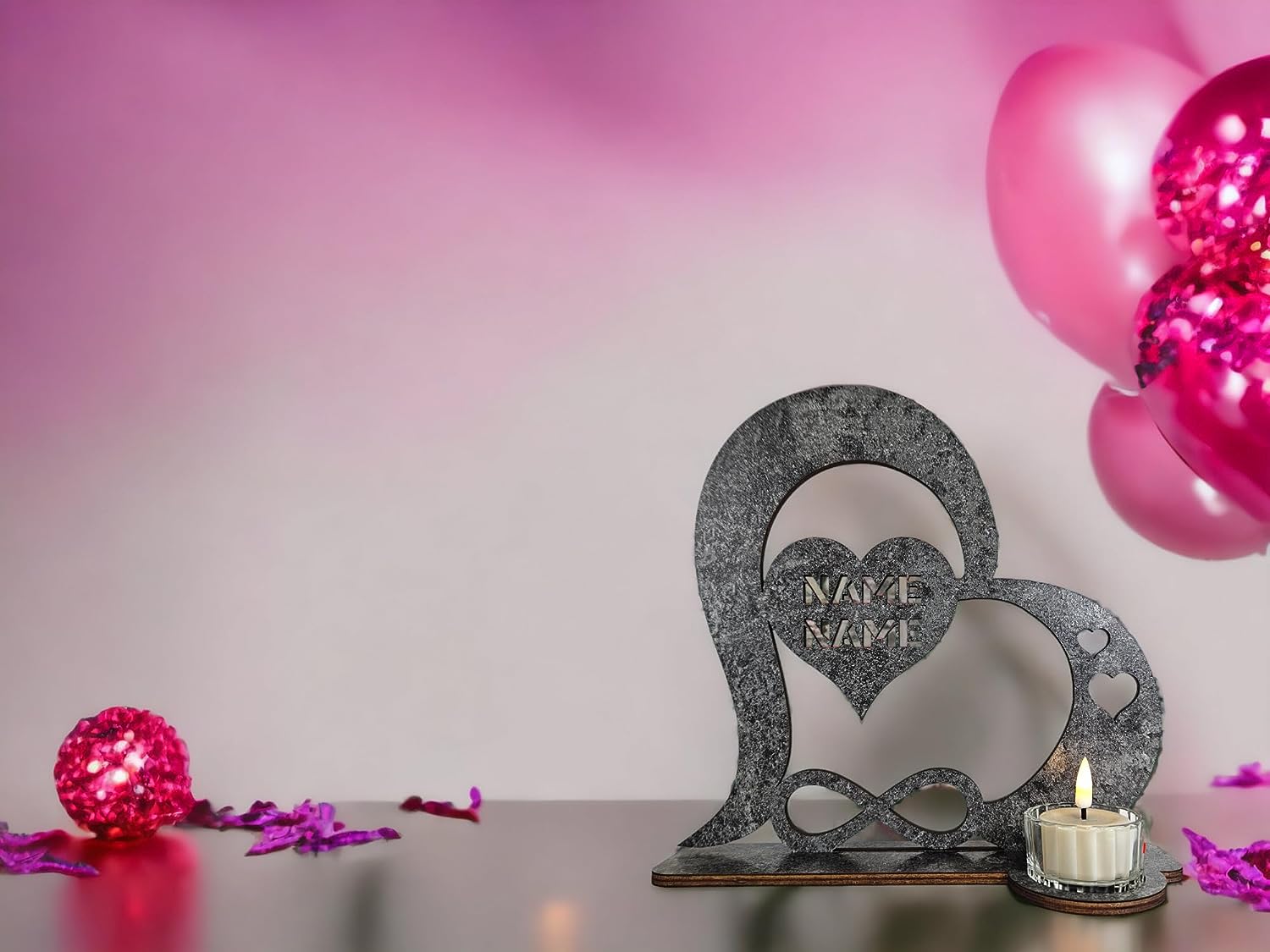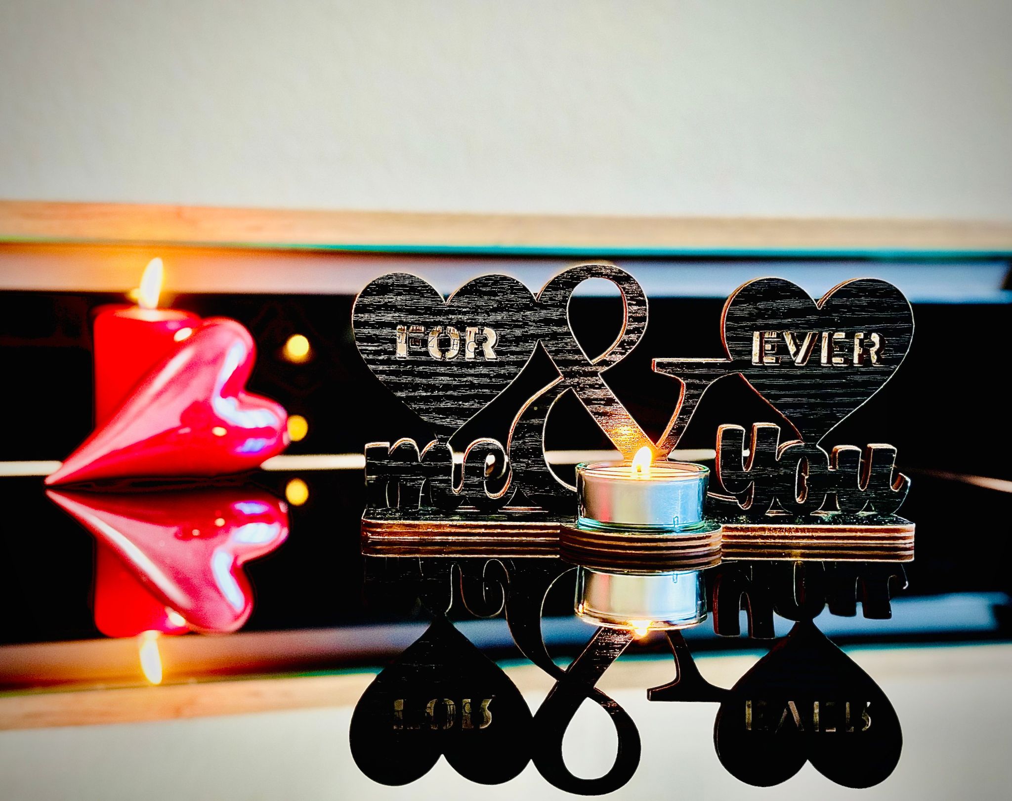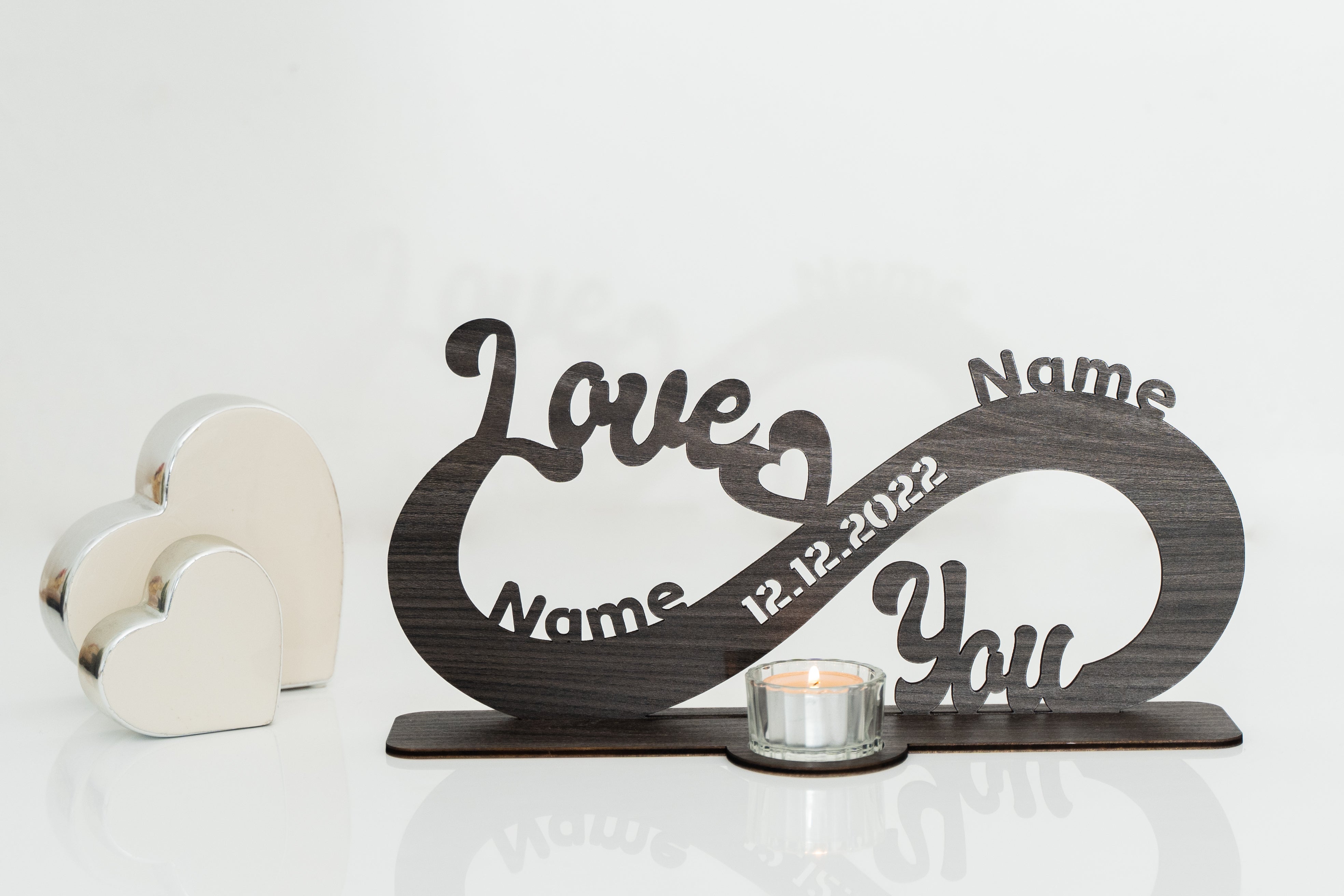 Herzen Infinity Hochzeitsgechenk Liebesgeschenk Teelichthalter Unendlichkeitszeichen personalisiert mit Zwei Namen zum Jahrestag