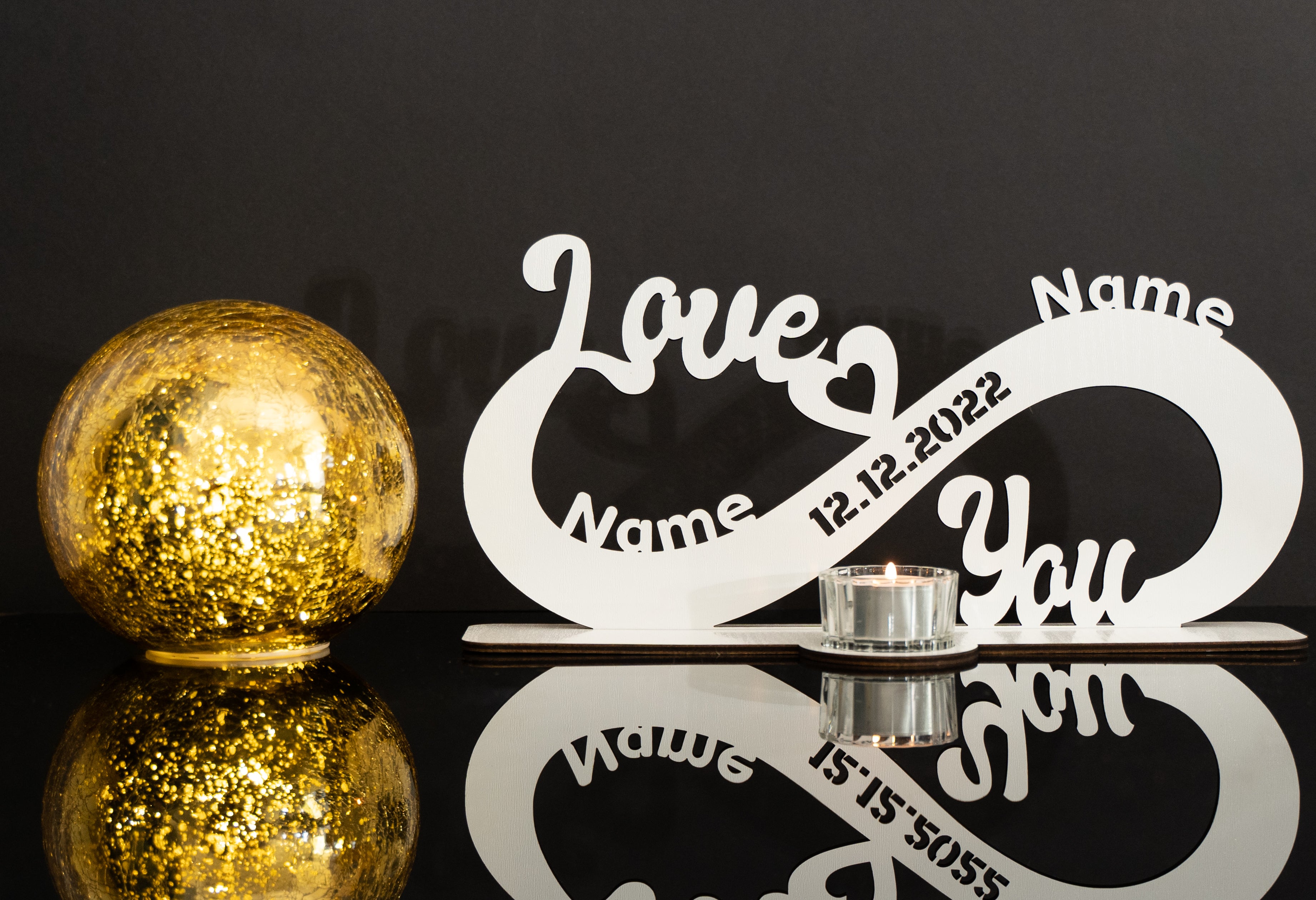 Hochzeitsgechenk für Brautpaar Liebesgeschenk Teelichthalter Unendlichkeitszeichen Love You