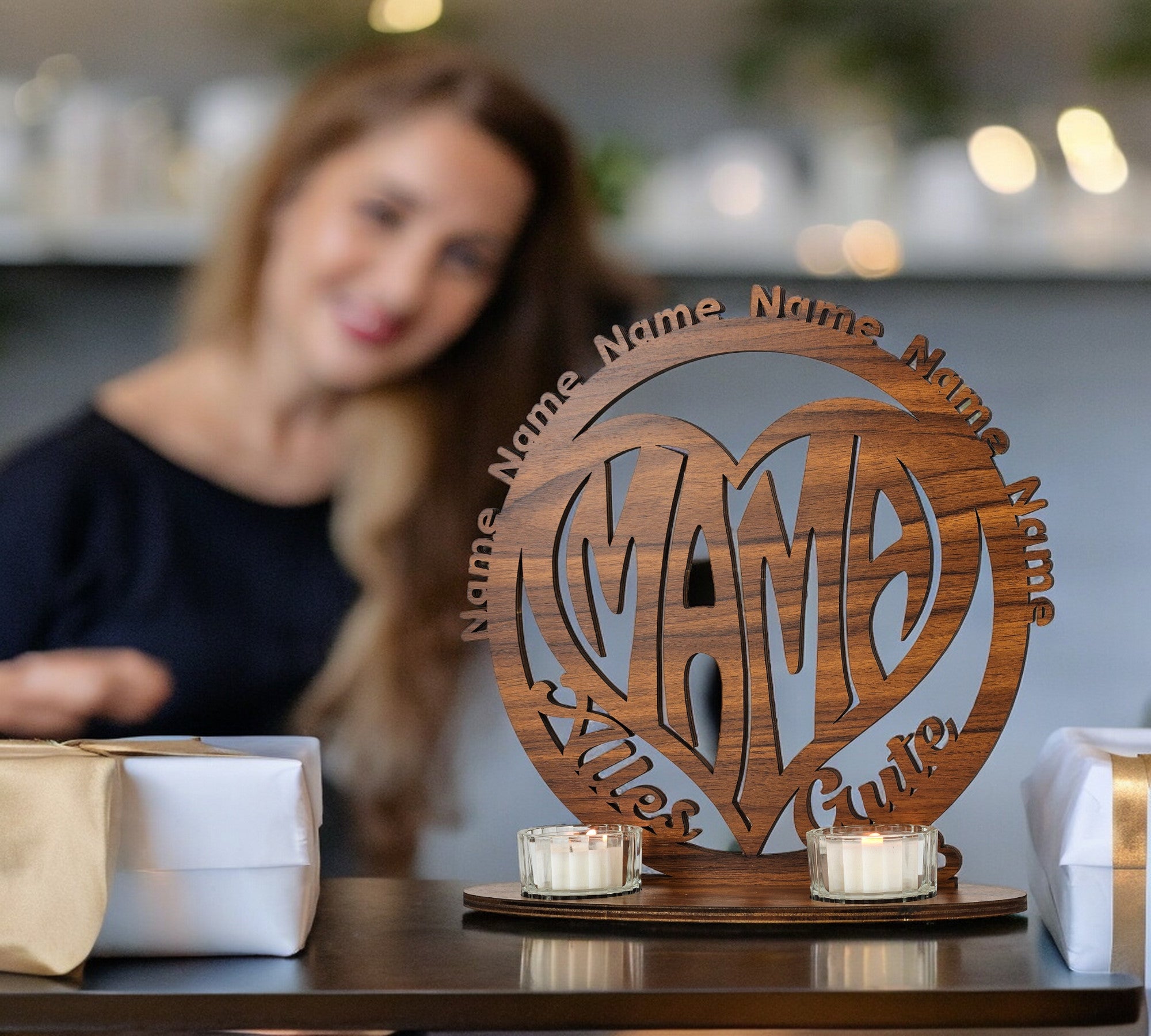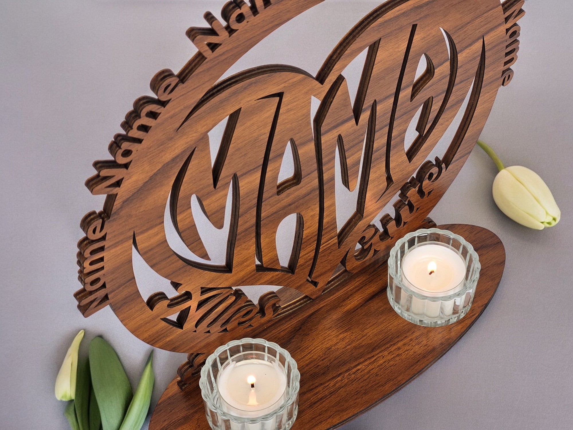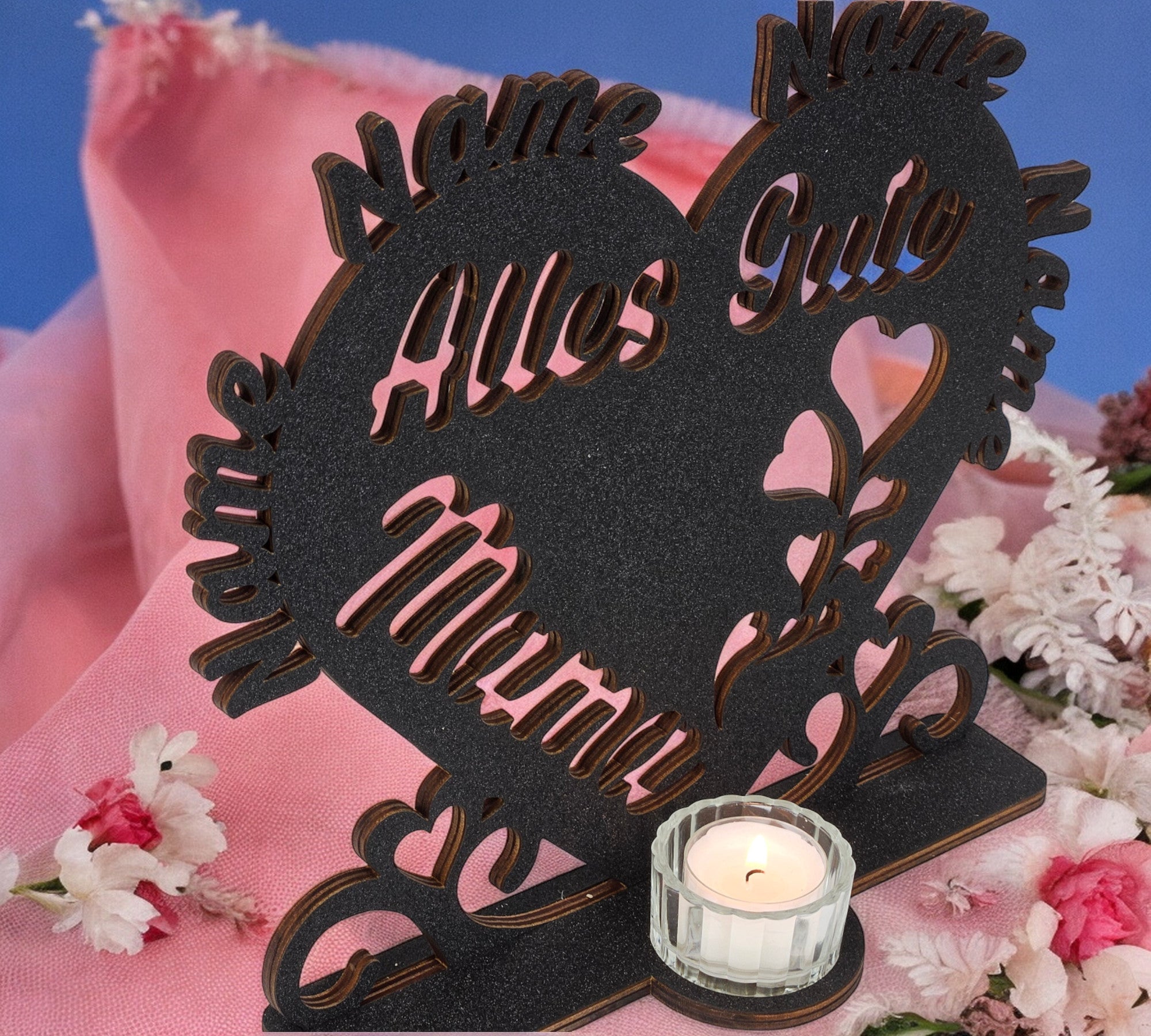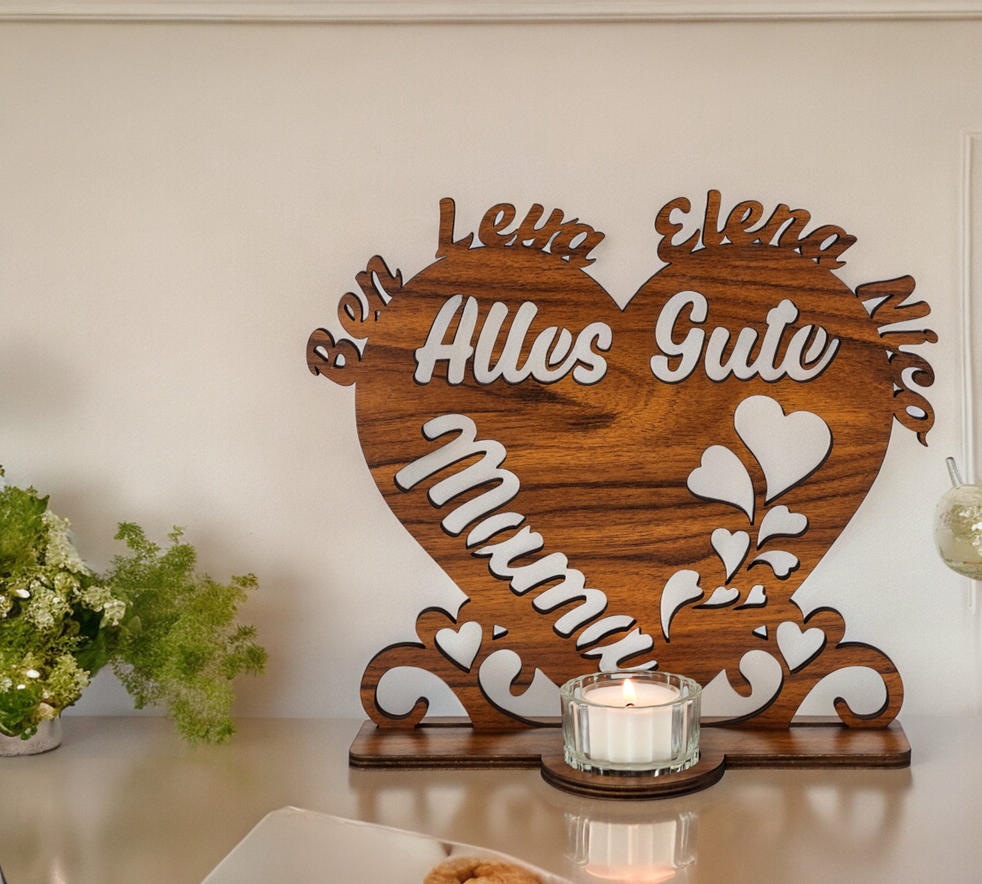 Beste Mama Muttertagsgeschenk Herz Teelichthalter personalisiert mit Zwei Namen Herzen zum Muttertag Geburtstag