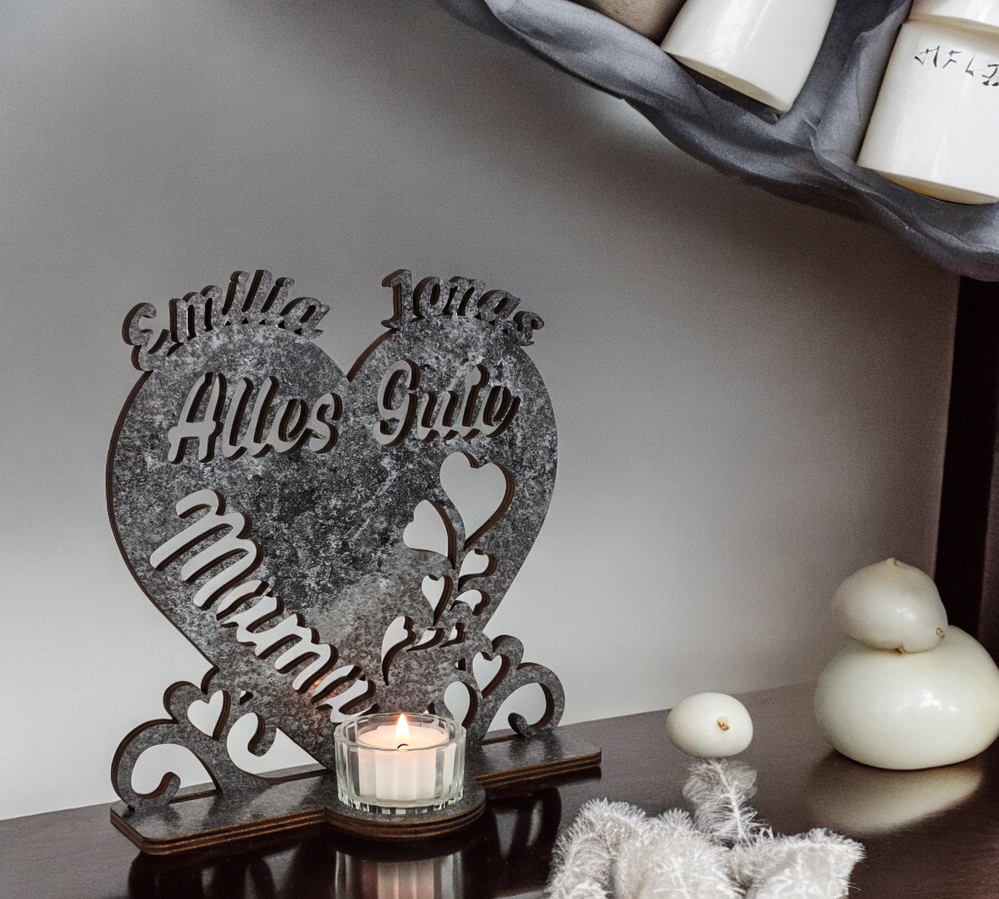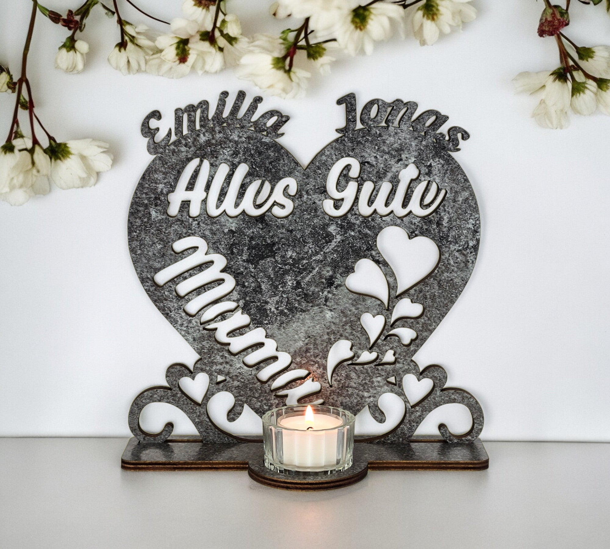 Waluna® Alles Gute Mama Muttertagsgeschenk Herz Teelichthalter personalisiert