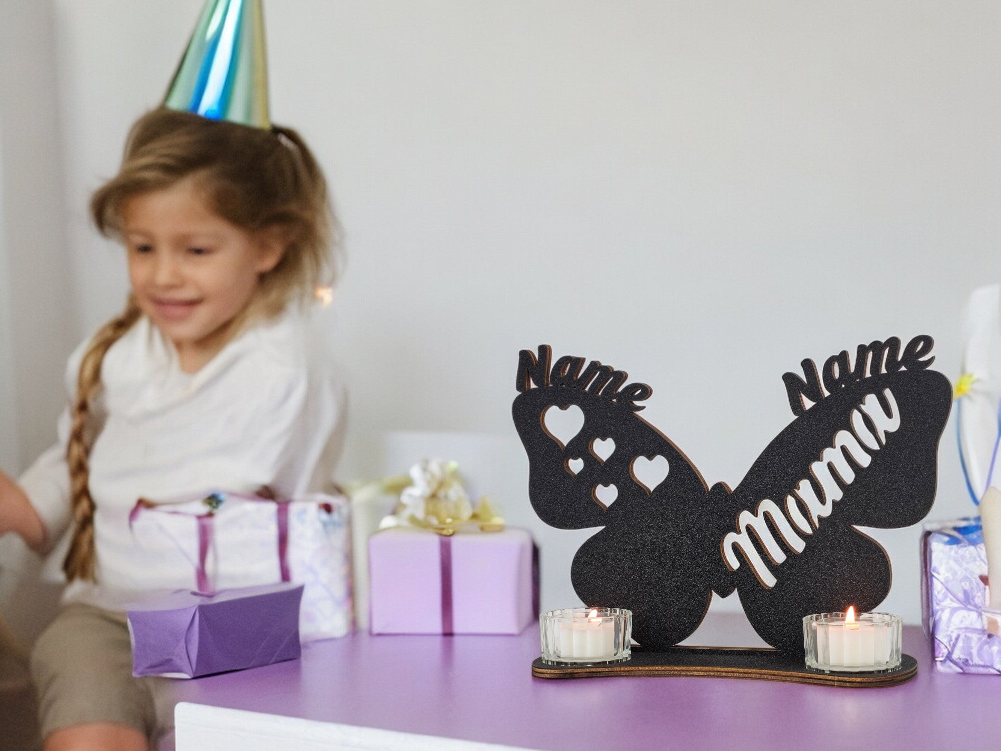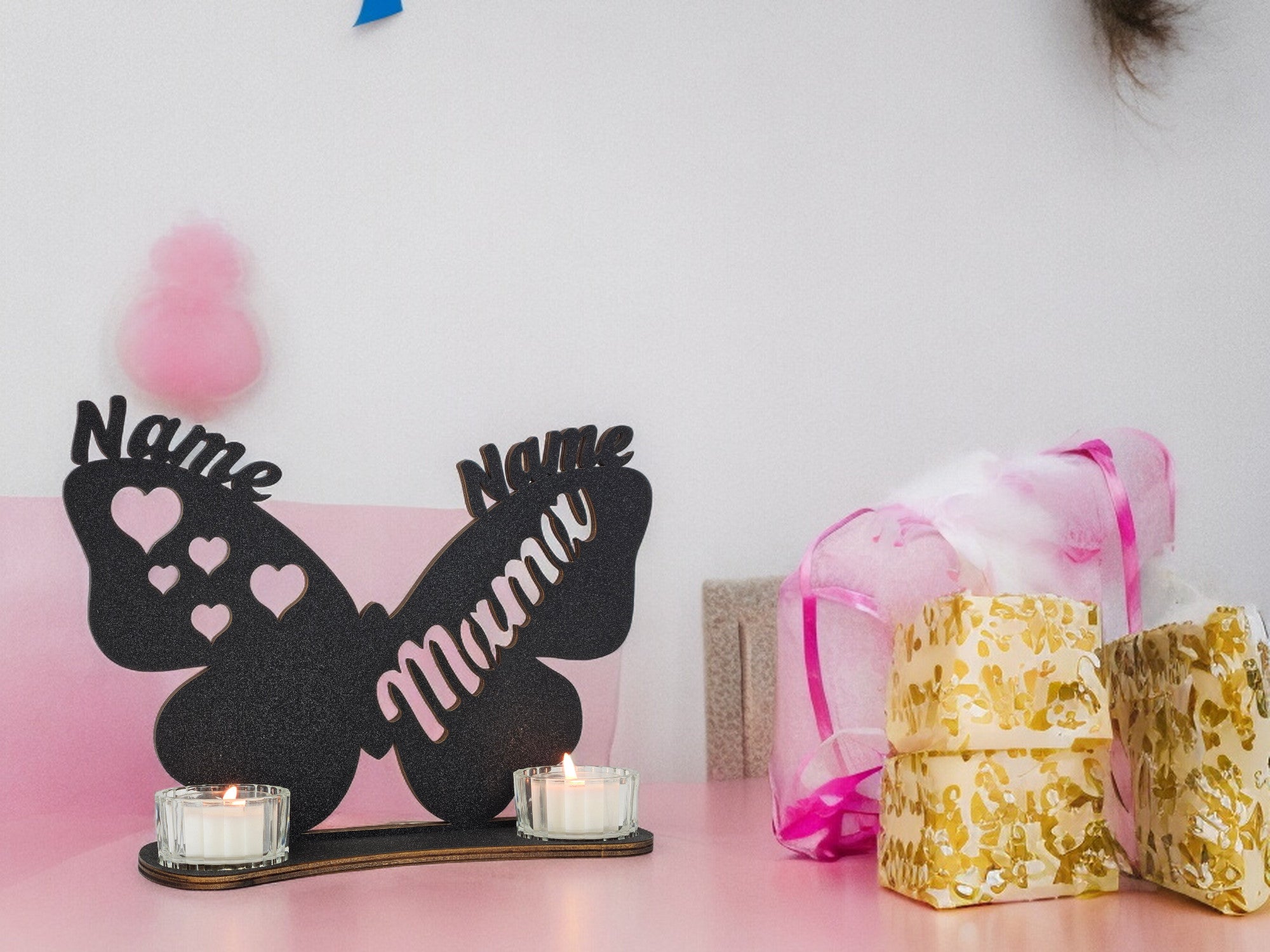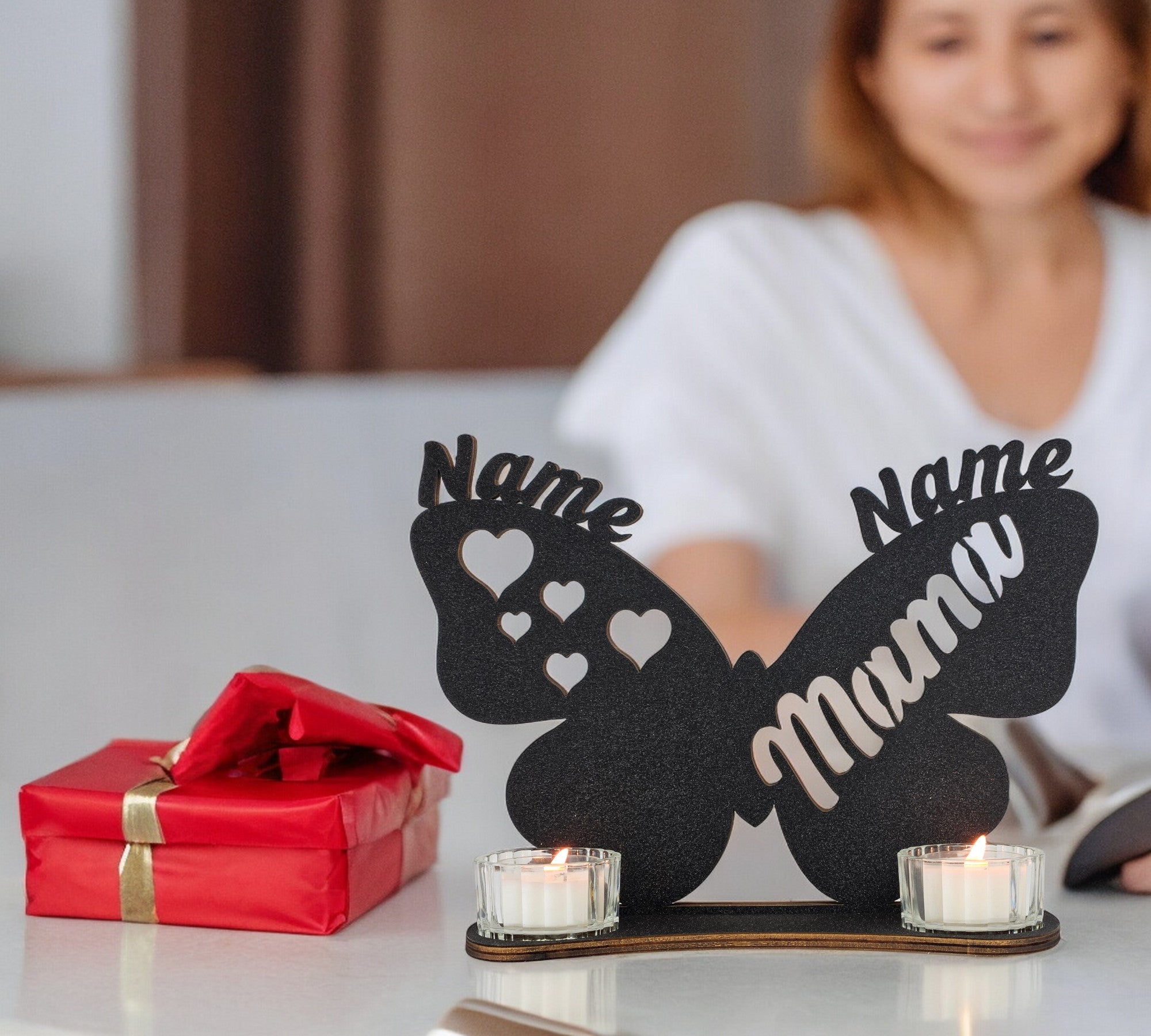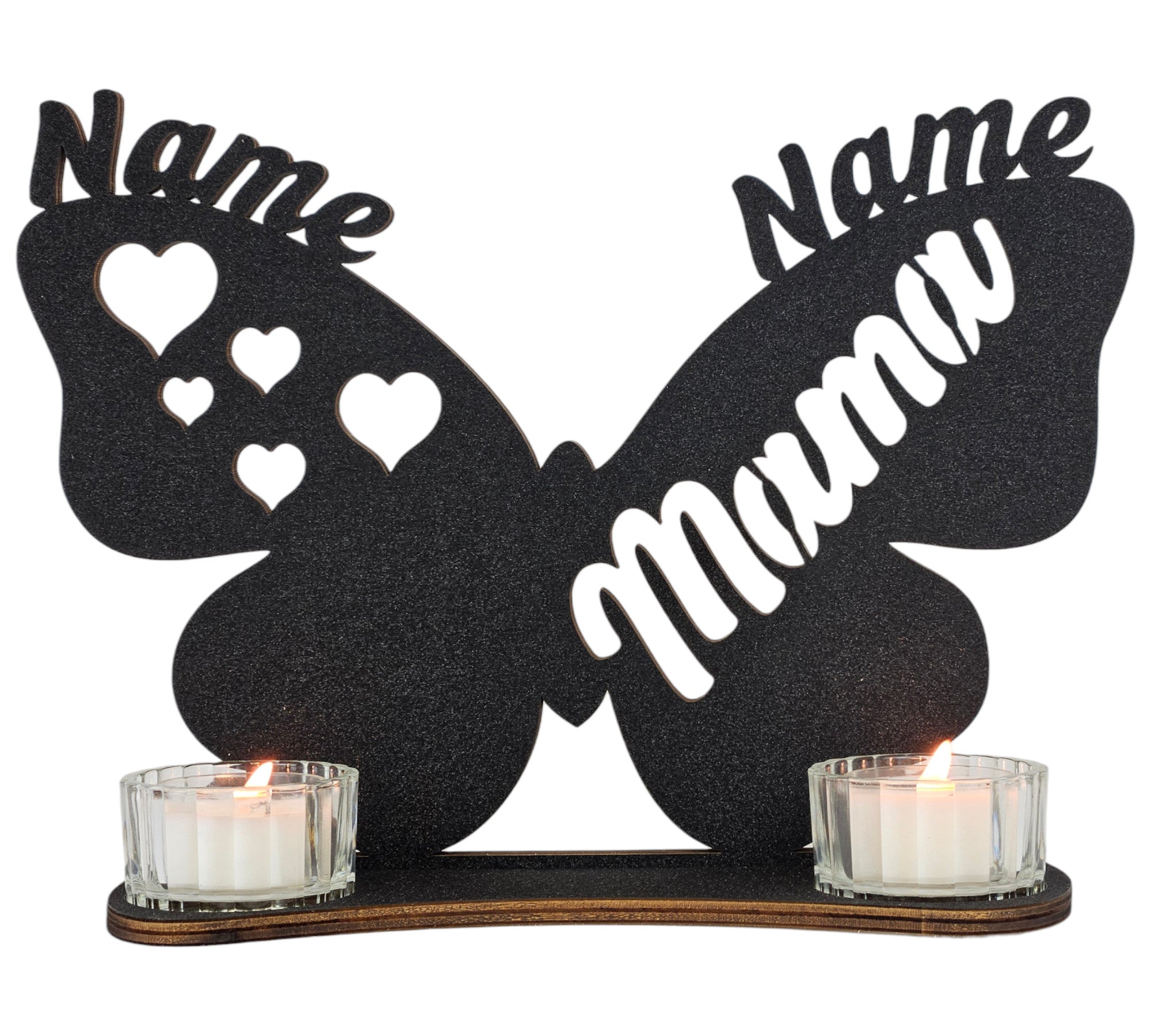 Waluna® Schmetterling Mama Muttertagsgeschenk personalisiert mit 2 Namen Herzen Teelichthalter zum Muttertag Geburtstag