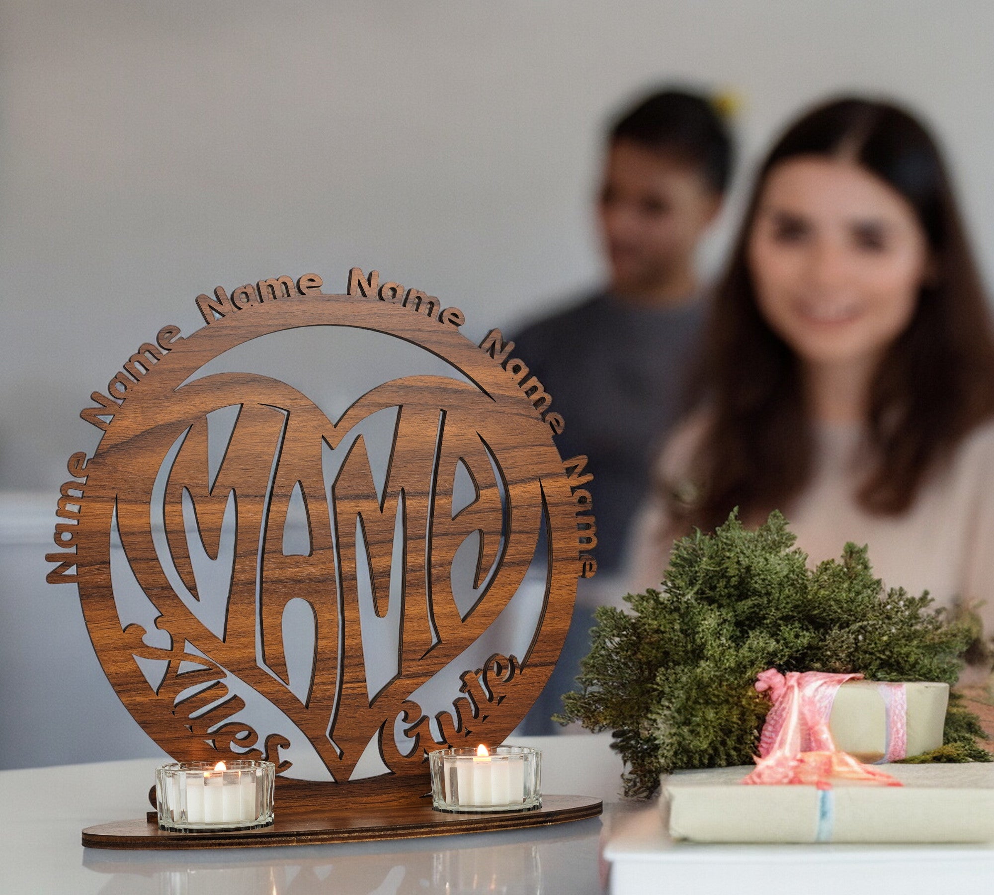 Lebensbaum Teelichthalter personalisiert mit bis zu 6 Namen und zu Weihnachten mit Familienname Stammbaum Kerzen in 12 Farben