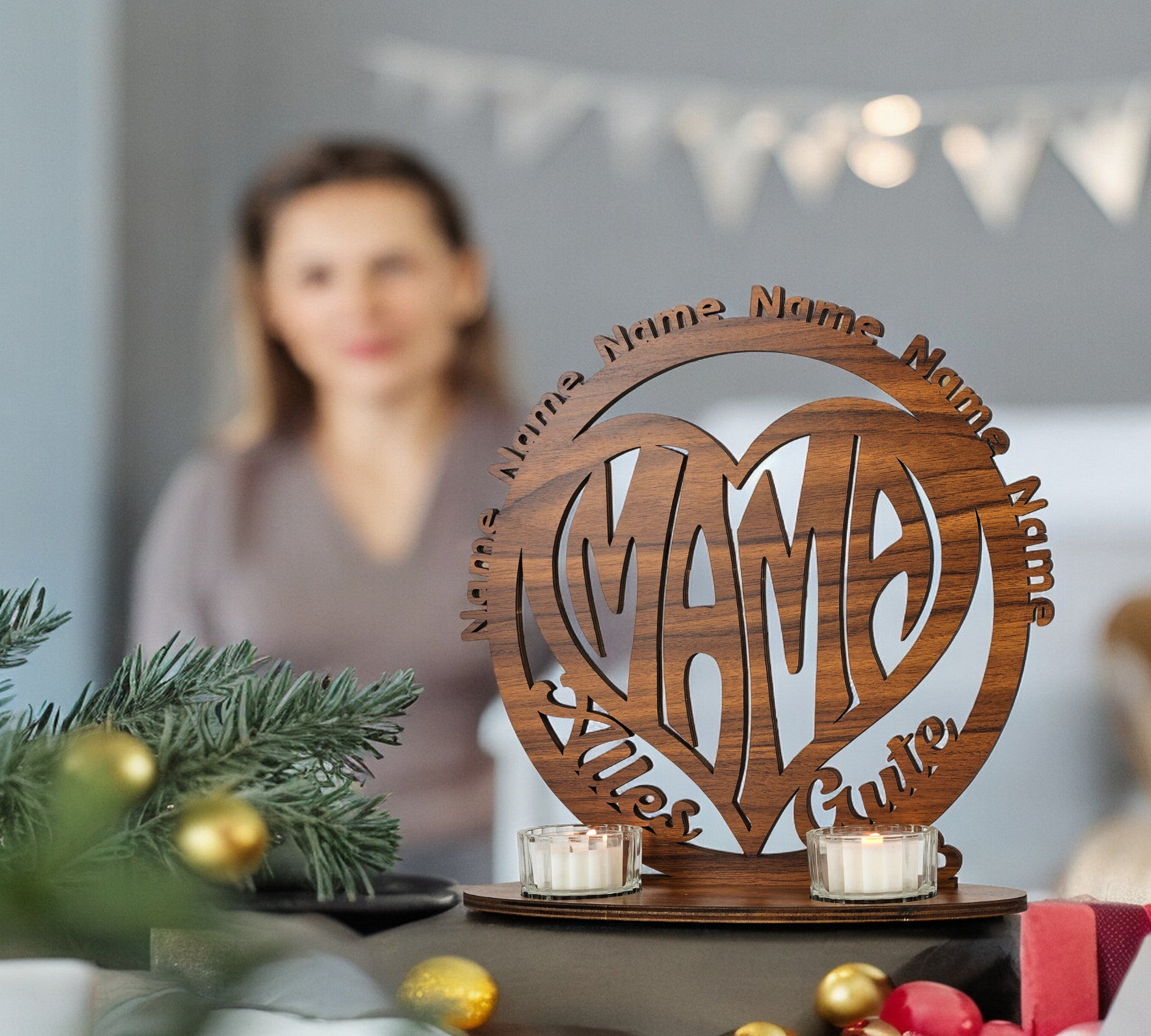 Waluna® Lebensbaum Mama Muttertagsgeschenk Liebe Stärke Teelichthalter personalisiert mit bis zu 6 Namen Familienbaum zum Muttertag