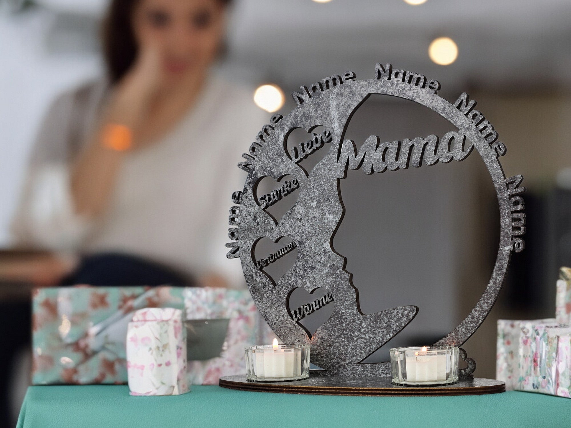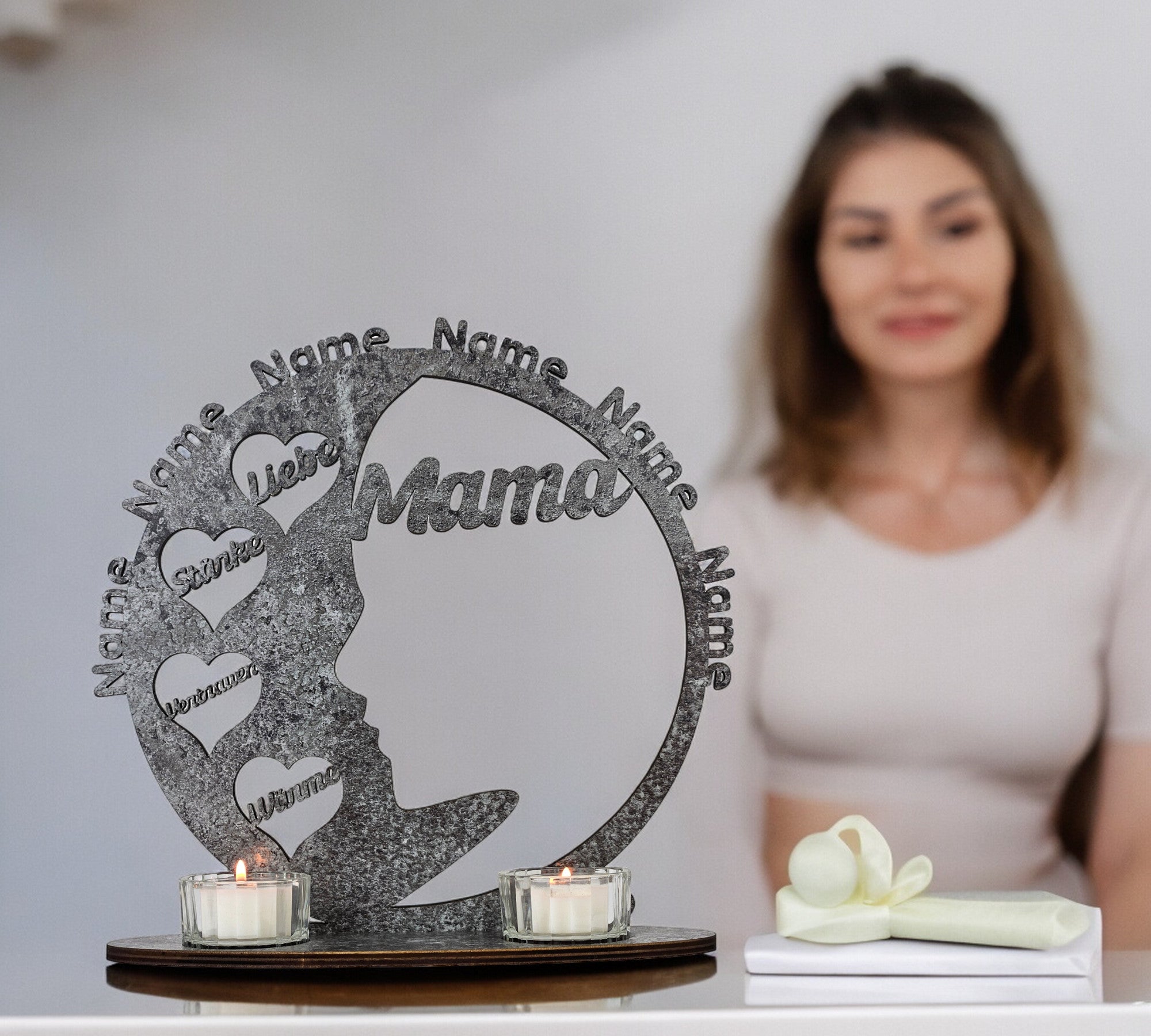 Mama Muttertagsgeschenk Unendlichkeitszeichen Teelichthalter personalisiert mit Zwei Namen und Datum Herzen zum Muttertag Geburtstag